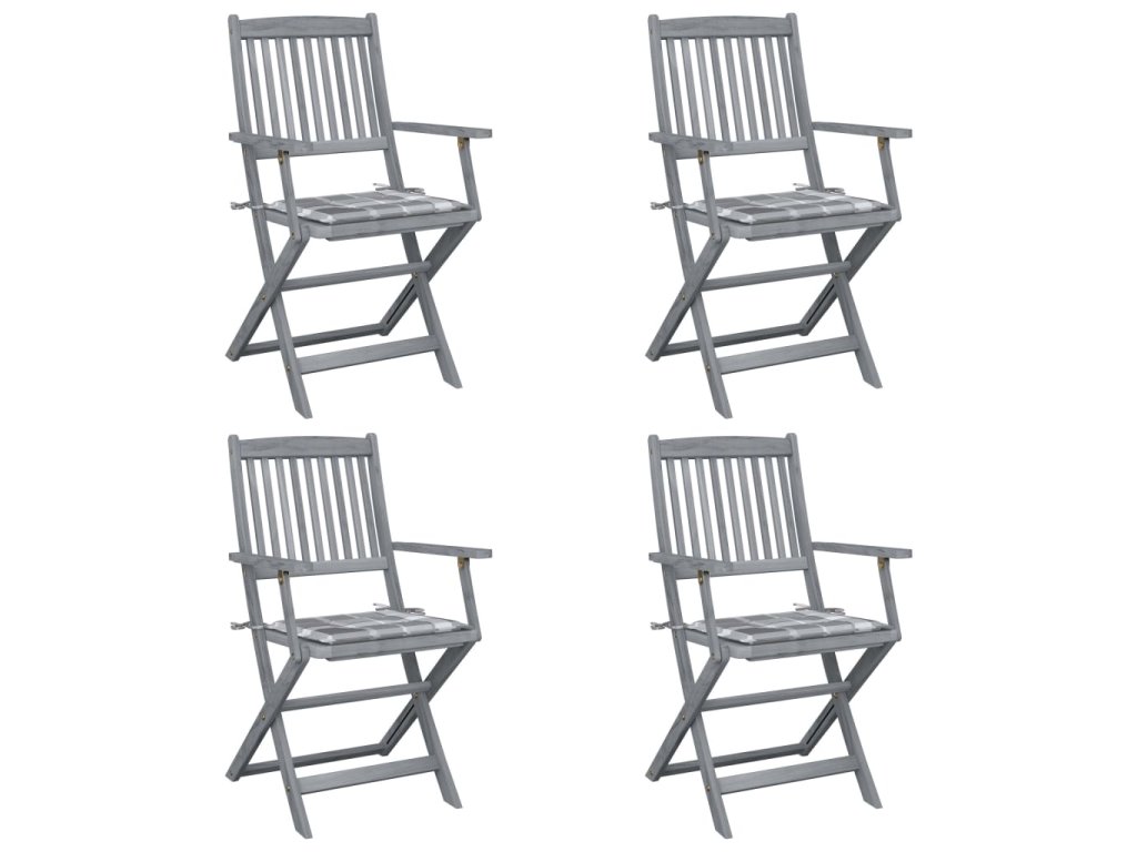 Jídelní židle jsou zhotovené z masivního akáciového dřeva, takže skvěle odolávají klimatickým vlivům a vydrží vám sloužit po dlouhá léta. Masivní akácie je tropické tvrdé dřevo, které dokáže unést značnou váhu, výborně vzdoruje působení času a neopotřebovává se. Do šeda zesvětlený povrch lze snadno čistit navlhčeným hadříkem. Pokud židle právě nepoužíváte, můžete je složit, aby vám zbytečně nezabíraly místo. Přiložené podušky vám navíc zajistí ještě větší pohodlí, ať už při jídle nebo při lenošení. Na každé najdete také dvě šňůrky pro bezpečné připevnění k židli.