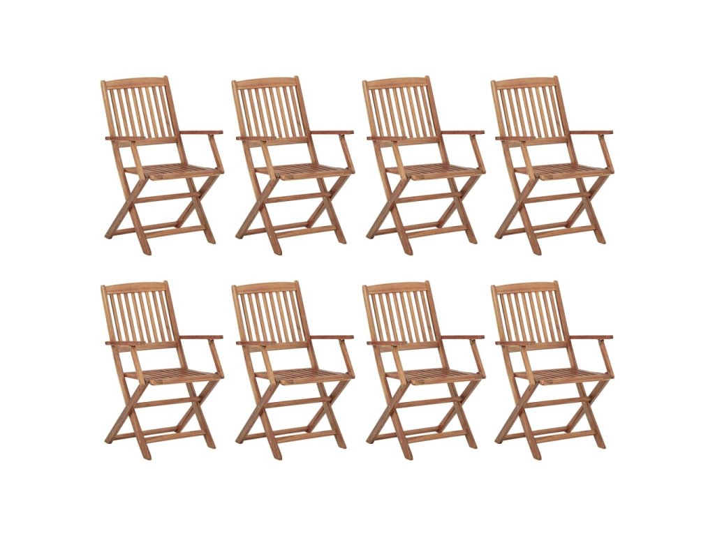 Jídelní židle jsou vyrobené z prémiového akáciového dřeva. Jedná se tropické tvrdé dřevo, které je odolné vůči povětrnostním vlivům a vydrží vám sloužit po mnoho let. Olejem napuštěný povrch se snadno čistí vlhkým hadříkem. Židle můžete složit, aby vám zbytečně nezabíraly místo, když je zrovna nepoužíváte. Pro větší pohodlí obdržíte spolu se židlemi také podušky. Každá z nich je opatřená 2 páry šňůrek, za které je lze pevně přivázat k židli.