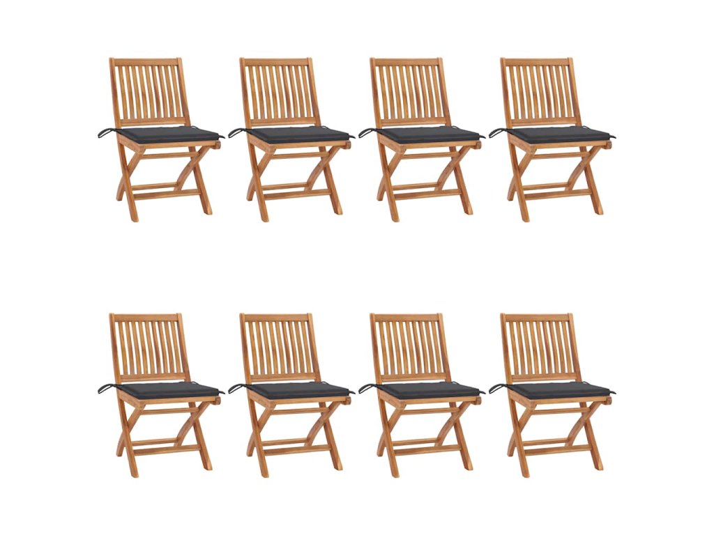 Nábytek je zhotovený z extrémně odolného teakového tvrdého dřeva, které již prošlo procesem smršťování, bylo uměle vysušené a poté jemně a dohladka obroušené. Teakové dřevo je oceňované pro svou výjimečnou pevnost a klimatickou odolnost, a proto je jedním z nejoblíbenějších materiálů pro výrobu zahradního nábytku. Jedná se o skvělou volbu, pokud si chcete pořídit venkovní výbavu, která vám bude sloužit dlouhá léta. Jídelní židle mají obroušený povrch, takže jsou odolné vůči povětrnostním podmínkám a snadno se čistí. Navíc je můžete složit, čímž ušetříte místo ve chvílích, kdy je zrovna nebudete používat. Podušky, které jsou součástí sady, nabízí mimořádné pohodlí. Každá poduška je opatřená 2 páry šňůrek, abyste mohli podušku pevně přivázat k židli.