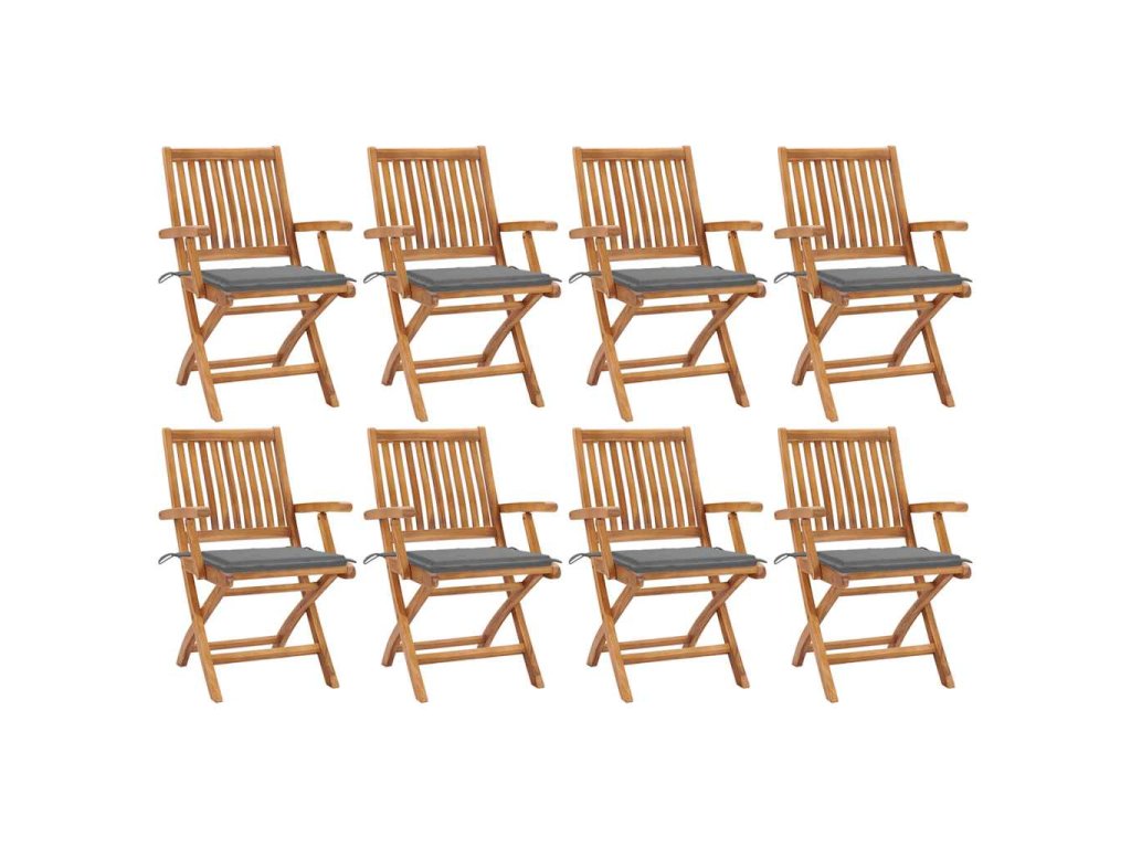 Nábytek je zhotovený z extrémně odolného teakového tvrdého dřeva, které již prošlo procesem smršťování, bylo uměle vysušené a poté jemně a dohladka obroušené. Teakové dřevo je oceňované pro svou výjimečnou pevnost a klimatickou odolnost, a proto je jedním z nejoblíbenějších materiálů pro výrobu zahradního nábytku. Jedná se o skvělou volbu, pokud si chcete pořídit venkovní výbavu, která vám bude sloužit dlouhá léta. Jídelní židle mají obroušený povrch, takže jsou odolné vůči povětrnostním podmínkám a snadno se čistí. Navíc je můžete složit, čímž ušetříte místo ve chvílích, kdy je zrovna nebudete používat. Podušky, které jsou součástí sady, nabízí mimořádné pohodlí. Každá poduška je opatřená 2 páry šňůrek, abyste mohli podušku pevně přivázat k židli.