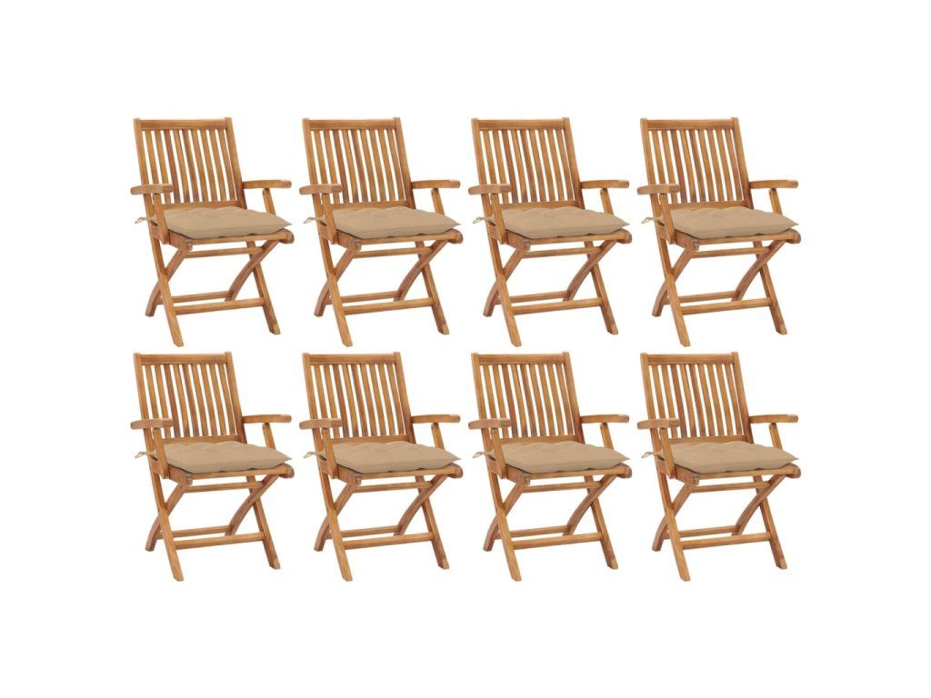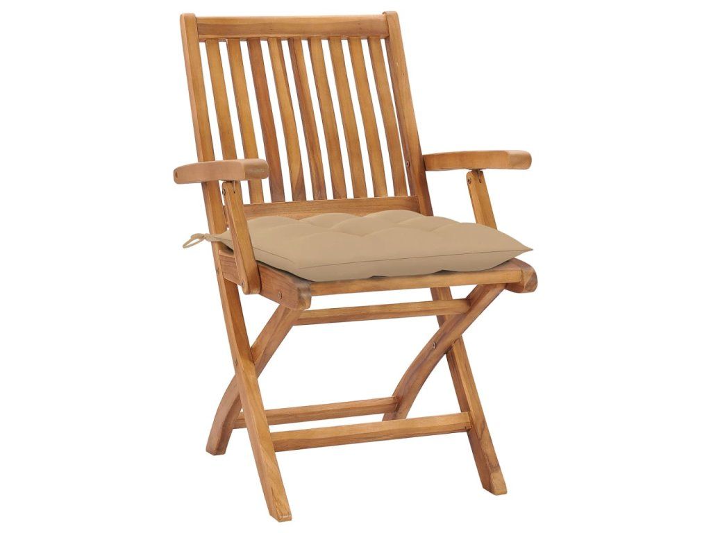 Nábytek je zhotovený z extrémně odolného teakového tvrdého dřeva, které již prošlo procesem smršťování, bylo uměle vysušené a poté jemně a dohladka obroušené. Teakové dřevo je oceňované pro svou výjimečnou pevnost a klimatickou odolnost, a proto je jedním z nejoblíbenějších materiálů pro výrobu zahradního nábytku. Jedná se o skvělou volbu, pokud si chcete pořídit venkovní výbavu, která vám bude sloužit dlouhá léta. Jídelní židle mají obroušený povrch, takže jsou odolné vůči povětrnostním podmínkám a snadno se čistí. Navíc je můžete složit, čímž ušetříte místo ve chvílích, kdy je zrovna nebudete používat. Podušky, které jsou součástí sady, nabízí mimořádné pohodlí. Každá poduška je opatřená 2 páry šňůrek, abyste mohli podušku pevně přivázat k židli.