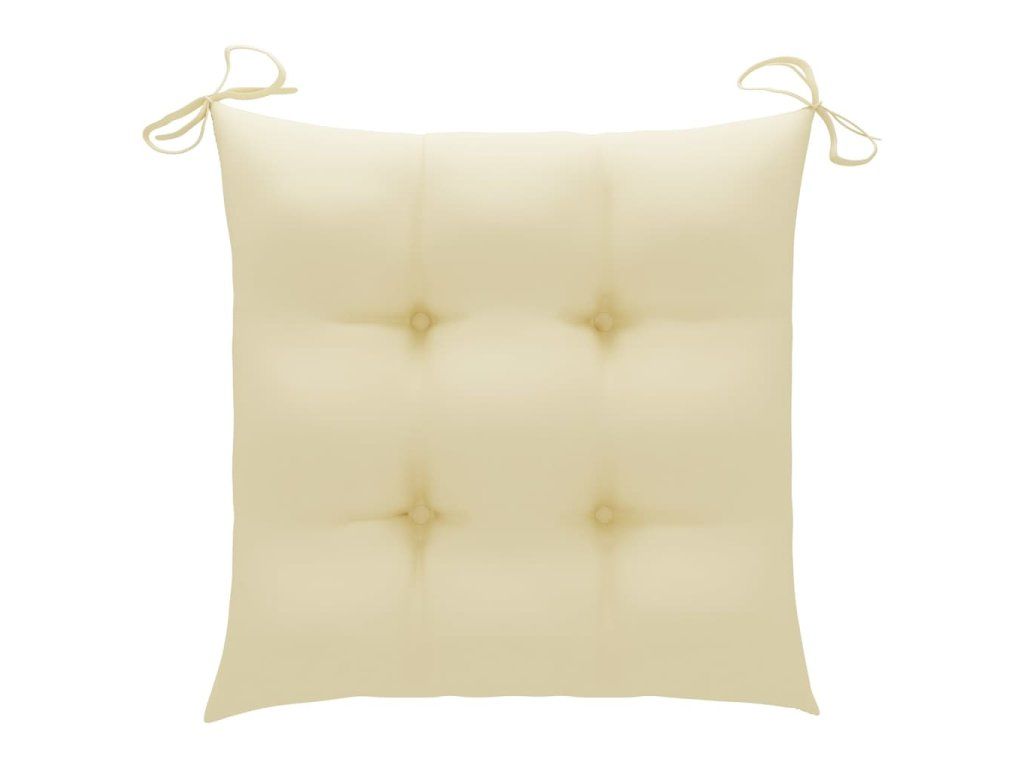 Nábytek je zhotovený z extrémně odolného teakového tvrdého dřeva, které již prošlo procesem smršťování, bylo uměle vysušené a poté jemně a dohladka obroušené. Teakové dřevo je oceňované pro svou výjimečnou pevnost a klimatickou odolnost, a proto je jedním z nejoblíbenějších materiálů pro výrobu zahradního nábytku. Jedná se o skvělou volbu, pokud si chcete pořídit venkovní výbavu, která vám bude sloužit dlouhá léta. Jídelní židle mají obroušený povrch, takže jsou odolné vůči povětrnostním podmínkám a snadno se čistí. Navíc je můžete složit, čímž ušetříte místo ve chvílích, kdy je zrovna nebudete používat. Podušky, které jsou součástí sady, nabízí mimořádné pohodlí. Každá poduška je opatřená 2 páry šňůrek, abyste mohli podušku pevně přivázat k židli.