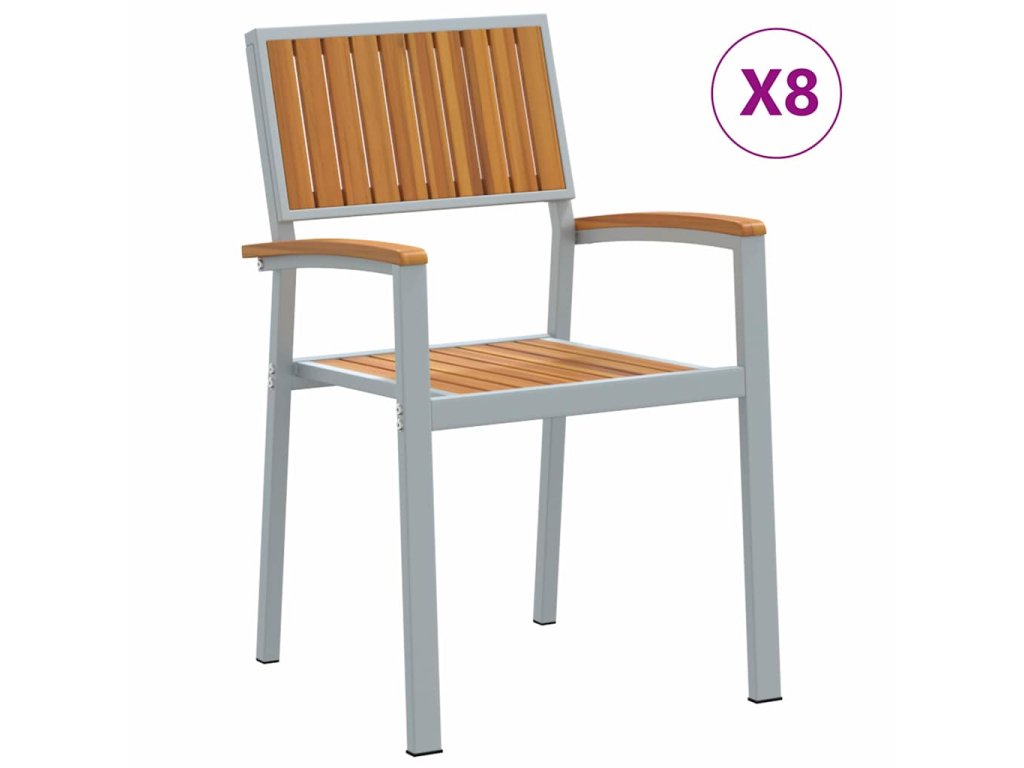 Tahle sada venkovních jídelních židlí má skvělý šedý ocelový rám a akáciové dřevo, takže dodá vašemu prostoru styl a komfort. Bez ohledu na to, jestli se sejdete s přáteli nebo si užijete klidné posezení na balkóně, tyhle židle promění jakékoli patio.
