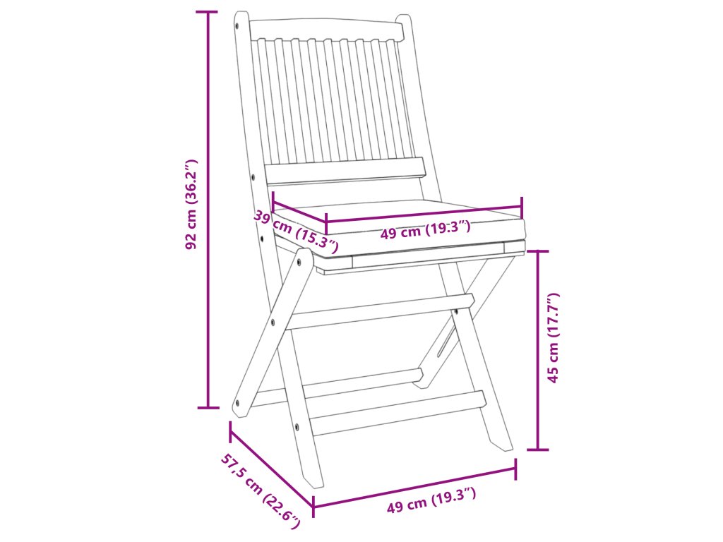 Tahle sada skládacích venkovních křesel je navržená pro maximální pohodlí a jednoduchost. Skvěle se hodí na váš balkon nebo venkovní terasu. S moderním stylem a přírodním dřevem, křesla přinášejí nejen pohodlí, ale také obohatí váš venkovní prostor. Skvélé pro relaxaci s knihou nebo při jídle na slunci.
