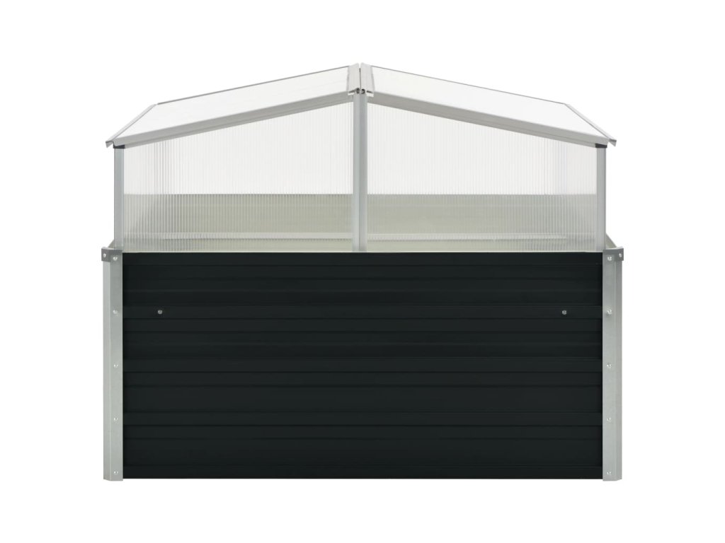 Zahradní skleník je vyroben z polykarbonátové desky a pozinkované oceli, je tedy mimořádně odolný a krásně zhotovený. Je dostatečně hluboký a široký, aby dokázal pojmout velké množství zeminy, a poskytl vám tak spoustu místa, kam si můžete zasadit svou zeleninu, rostliny, bylinky a květiny. Se svým jednoduchým čtvercovým designem se bude skvěle vyjímat na každém balkonu, terase či dvorku. Obvod spodní části skleníku má zahnuté okraje, aby nikde nevyčnívaly žádné ostré hrany. Sestavení výrobku je snadné. Upozorňujeme, že střecha skleníku nedokáže čelit těžké sněhové pokrývce.