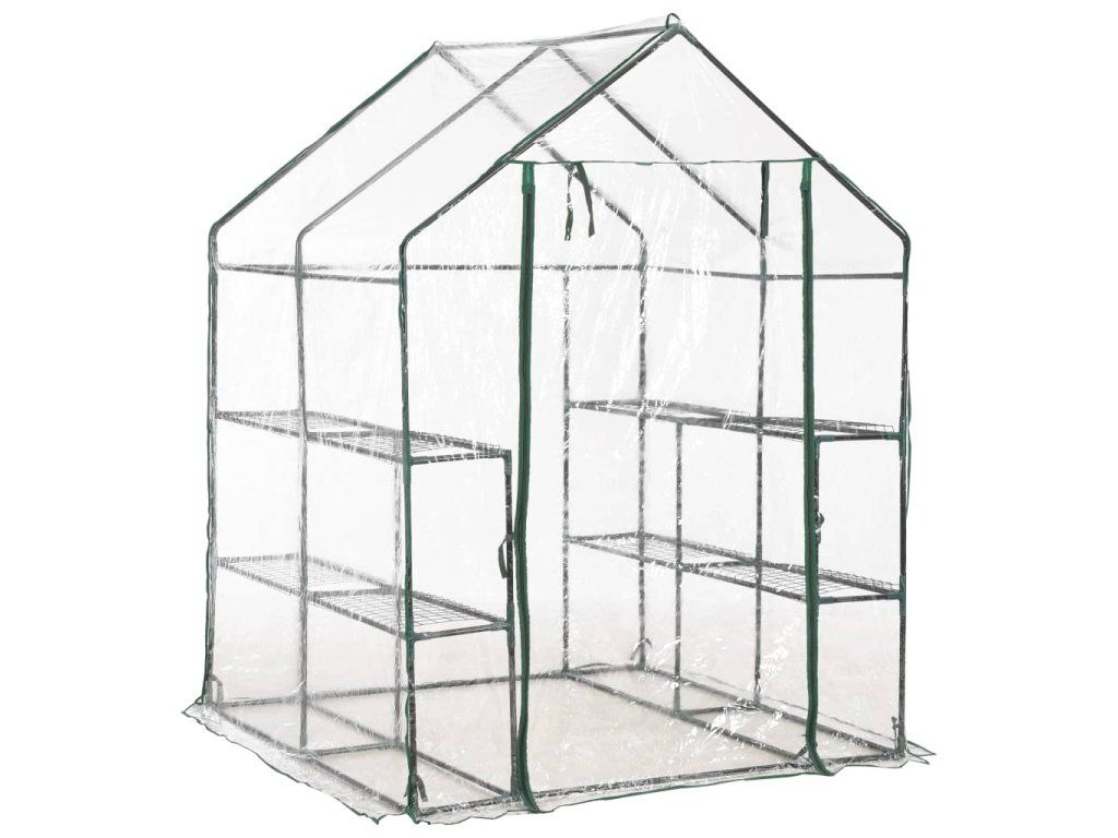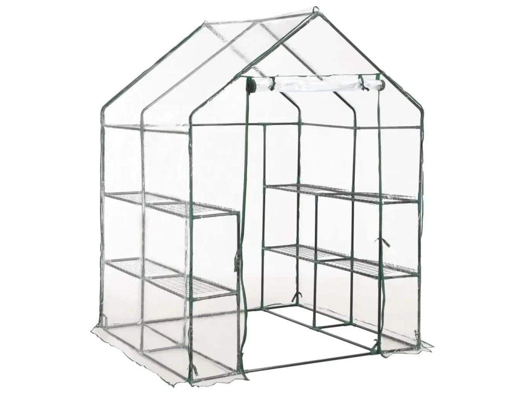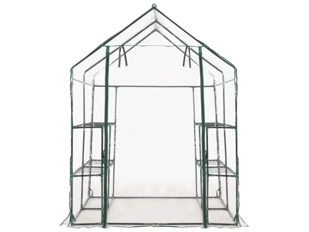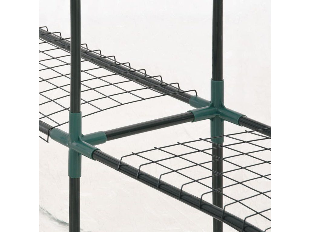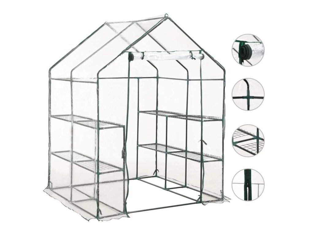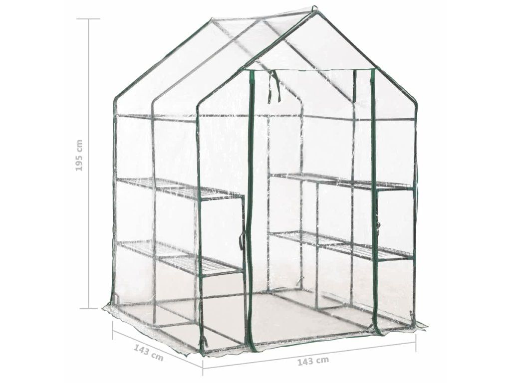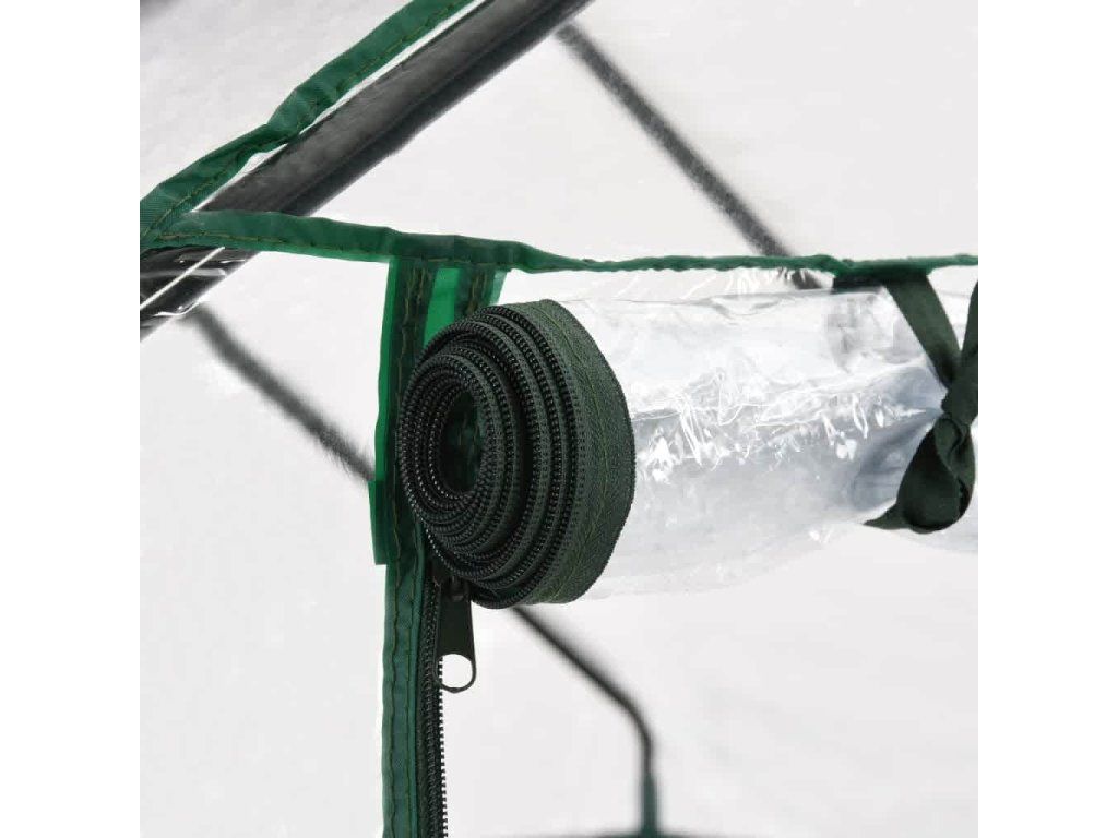Konstrukci skleníku tvoří rám z pevné, rezuvzdorné oceli a PVC fólie, což zajišťuje jeho mimořádnou odolnost a dlouhou životnost. Skleník disponuje 8 drátěnými policemi (4 na každé straně), takže vám nabídne spoustu místa pro vaše klíčící rostliny, kvetoucí květiny, čerstvé bylinky i zeleninu. Průhledná plastová plachta dobře propouští sluneční světlo, které se tím pádem dostane až k vašim květinám a rostlinám. Navíc vám umožní mít svou zeleň neustále na očích. Skleník je rovněž opatřen rolovacími dveřmi se zavíráním na zip, jež zajišťují dobrou cirkulaci vzduchu a snadný přístup k vašim rostlinám.