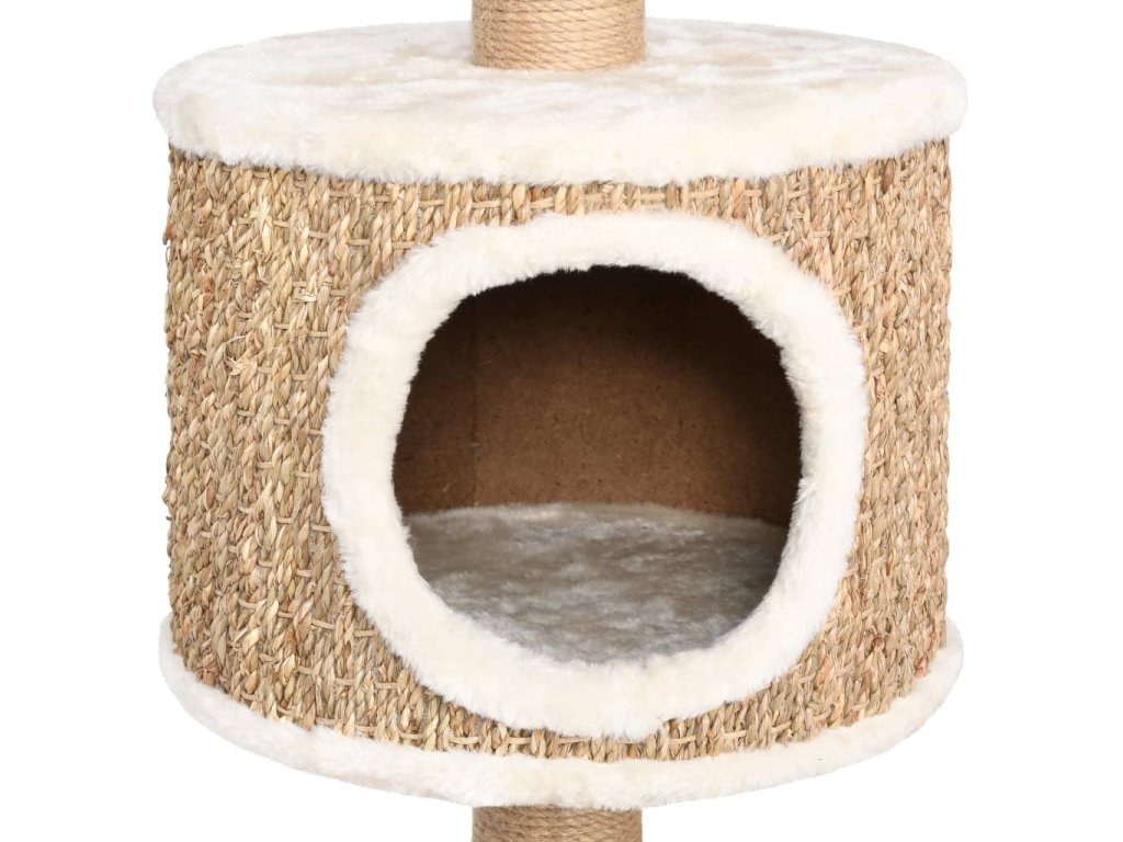 Vysoký strom pro kočky obsahuje několik plošin a pelíšek, takže vaše kočky mají vše, aby si mohly škrábat drápky, vyhlížet po okolí, šplhat a také relaxovat, co si srdce ráčí. Sloupky škrabadla jsou omotané mořskou trávou, na které si vaše zvířat mohou naostřit drápky. Má několik plošin, které vašim chlupatým přátelům poskytnou útulné místo k odpočinku nebo zdřímnutí. Je zde také zavěšený míček pro extra zábavu.