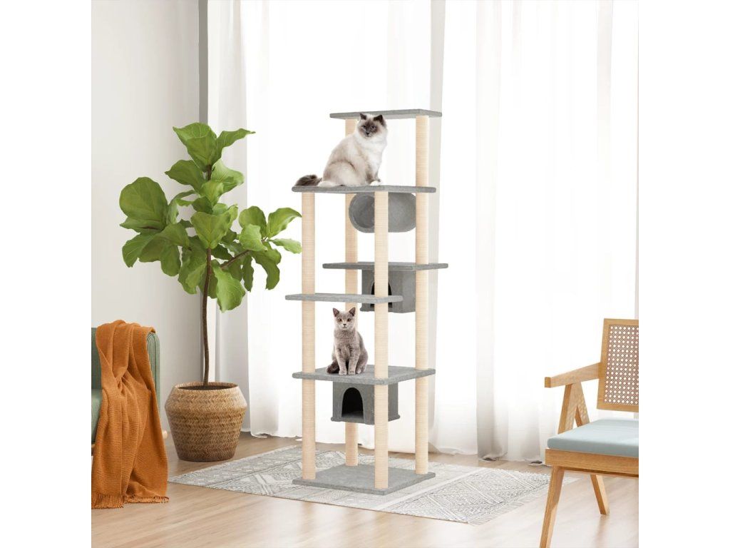 - Přírodní sisalové sloupky: Odolné a pevné sloupky s přírodním sisalem tohoto škrabadla dokonale uspokojí škrabací instinkt koček a zabrání jim poškrábat váš nábytek.