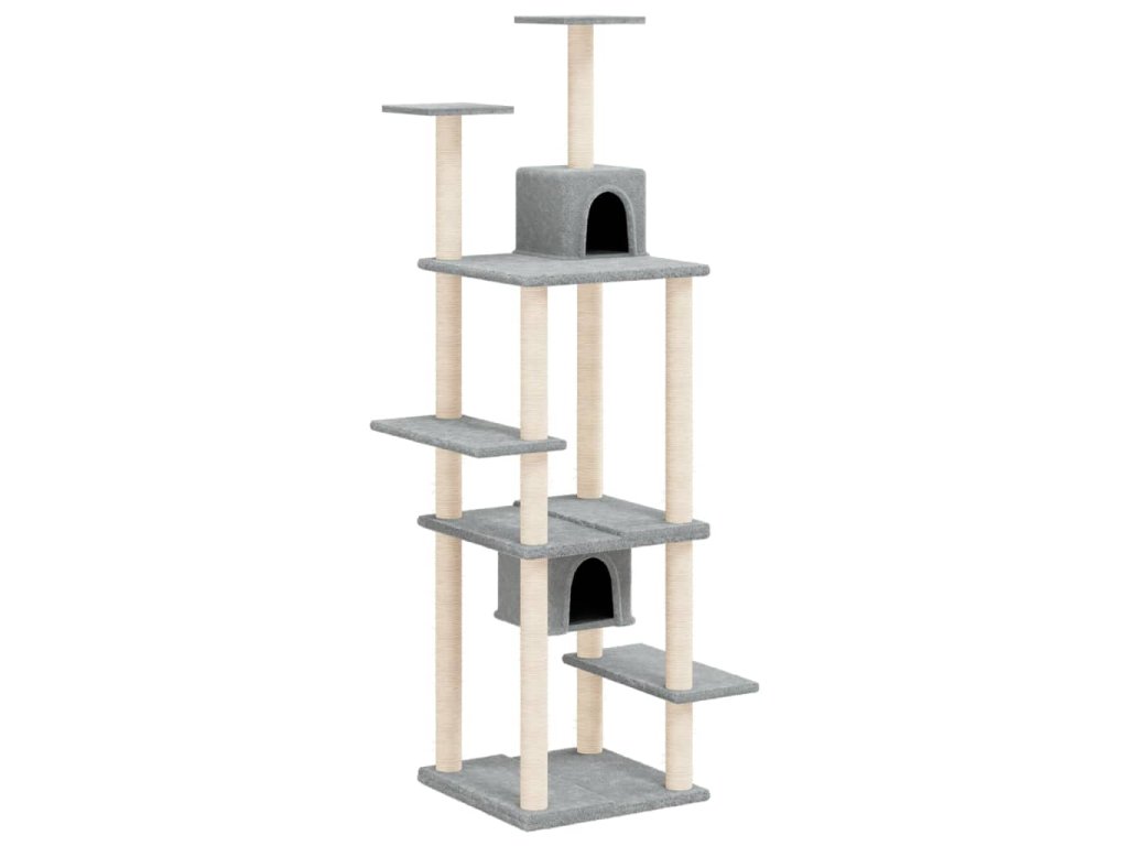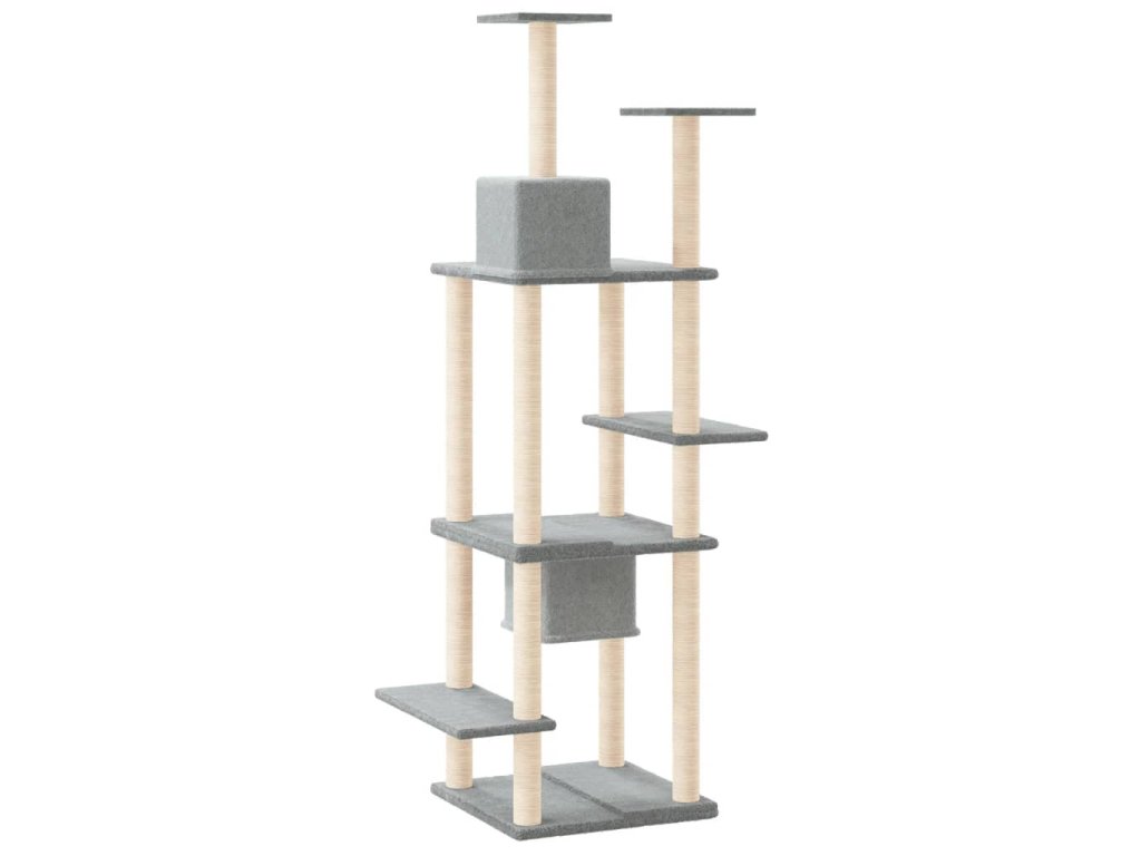 - Přírodní sisalové sloupky: Odolné a pevné sloupky s přírodním sisalem tohoto škrabadla dokonale uspokojí škrabací instinkt koček a zabrání jim poškrábat váš nábytek.