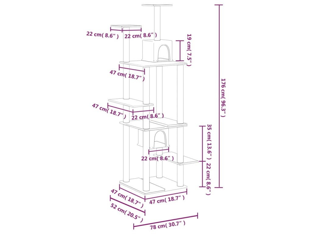 - Všestranná věž pro kočky: Víceúrovňový nábytek pro kočky je navržen se 2 domečky a plošinami, které poskytují kočkám ideální místo pro šplhání, sezení, škrábání, schovávání se a také k odpočinku.