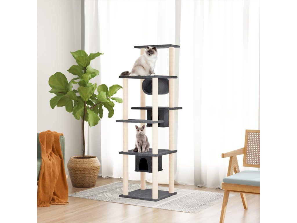 - Přírodní sisalové sloupky: Odolné a pevné sloupky s přírodním sisalem tohoto škrabadla dokonale uspokojí škrabací instinkt koček a zabrání jim poškrábat váš nábytek.