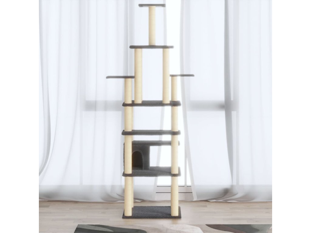 Vaši chlupatí kamarádi si mohou na tomto sisalovým provázkem obaleném škrabadlu brousit své drápky, což jim umožňuje vybít si své přirozené škrabací instinkty. Navíc si užijí spoustu zábavy, až se po kočičím stromě budou navzájem honit nahoru a dolů. Jakmile se do sytosti vyřádí, zamilují si vaši malí kamarádi odpočinek na vyšších plošinách, odkud budou mít krásný rozhled. Mohou se také ukrýt v útulném domečku a zdřímnout si v něm nebo se prospat v pohodlném plyšovém pelíšku.