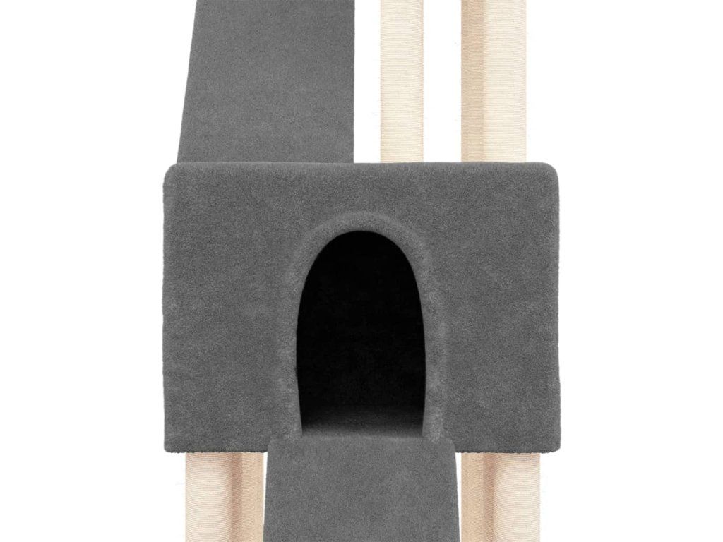 - Přírodní sisalové sloupky: Odolné a pevné sloupky s přírodním sisalem tohoto škrabadla dokonale uspokojí škrabací instinkt koček a zabrání jim poškrábat váš nábytek.