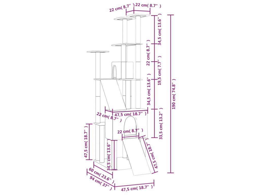 - Všestranná věž pro kočky: Víceúrovňový nábytek pro kočky je navržen se 2 domečky, 2 žebříky a plošinami, které poskytují kočkám ideální místo pro šplhání, sezení, škrábání, schovávání se a také k odpočinku.