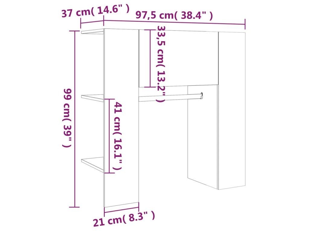 - Rozměry: 97,5 x 37 x 99 cm (Š x H x V)
