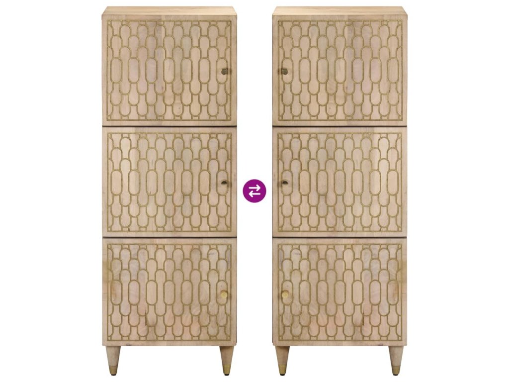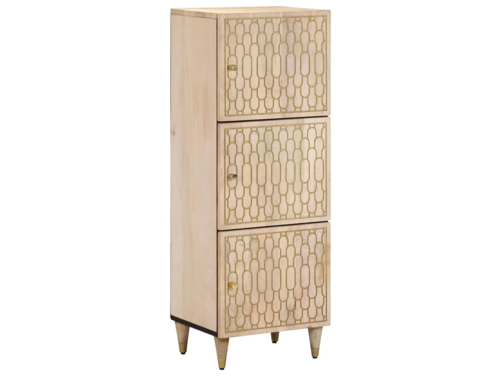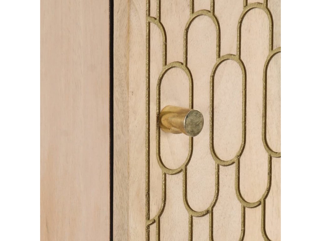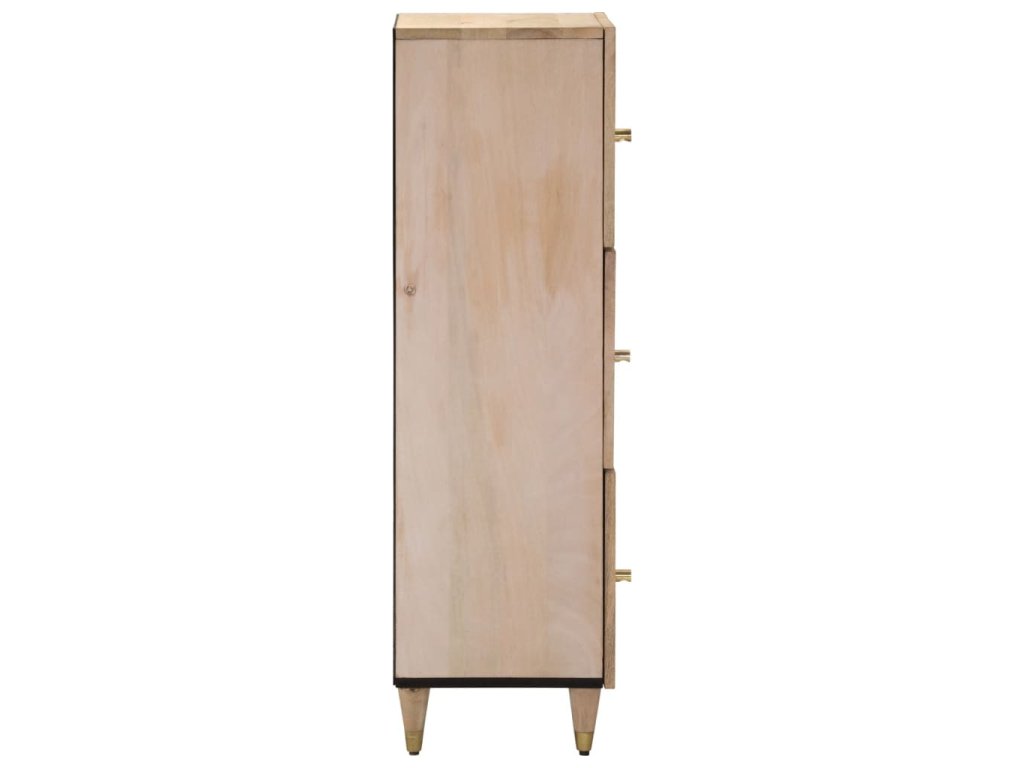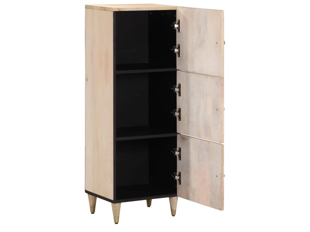 - Masivní mangovníkové dřevo: Masivní mangovníkové dřevo je pevné tropické tvrdé dřevo, ze kterého se vyrábí robustní nábytek. Krásná kresba dřeva propůjčuje každému kusu nábytku jeho jedinečný a od všech ostatních lehce odlišný vzhled. Skříňka je vyrobená z masivního mangovníkového dřeva, je tedy stabilní a odolná.