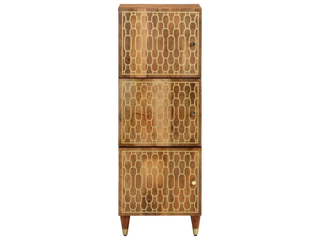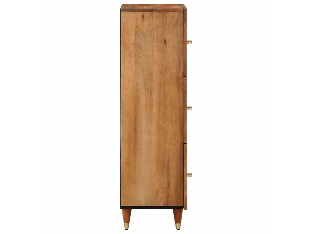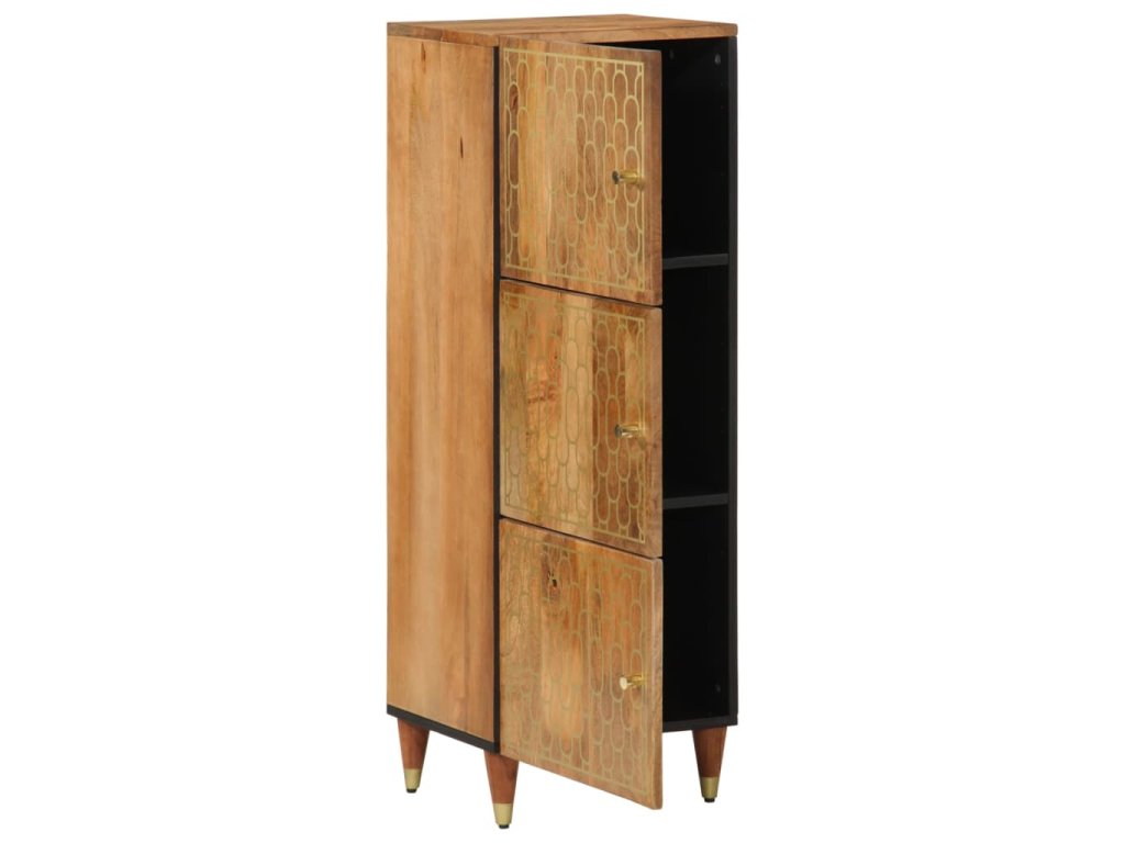- Masivní mangovníkové dřevo: Masivní mangovníkové dřevo je pevné tropické tvrdé dřevo, ze kterého se vyrábí robustní nábytek. Krásná kresba dřeva propůjčuje každému kusu nábytku jeho jedinečný a od všech ostatních lehce odlišný vzhled. Skříňka je vyrobená z masivního mangovníkového dřeva, je tedy stabilní a odolná.