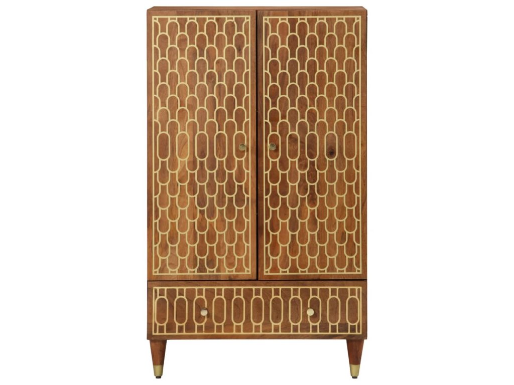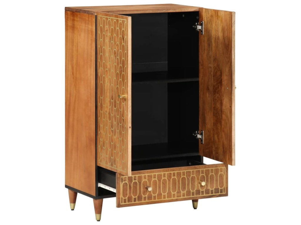 - Masivní mangovníkové dřevo: Masivní mangovníkové dřevo je pevné tropické tvrdé dřevo, ze kterého se vyrábí robustní nábytek. Krásná kresba dřeva propůjčuje každému kusu nábytku jeho jedinečný a od všech ostatních lehce odlišný vzhled. Skříňka je vyrobená z masivního mangovníkového dřeva, je tedy stabilní a odolná.