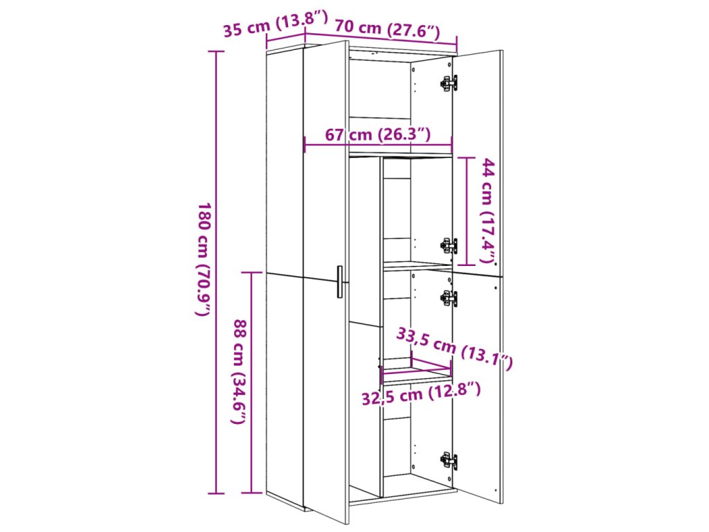 - Rozměry: 70 x 35 x 180 cm (D x Š x V)