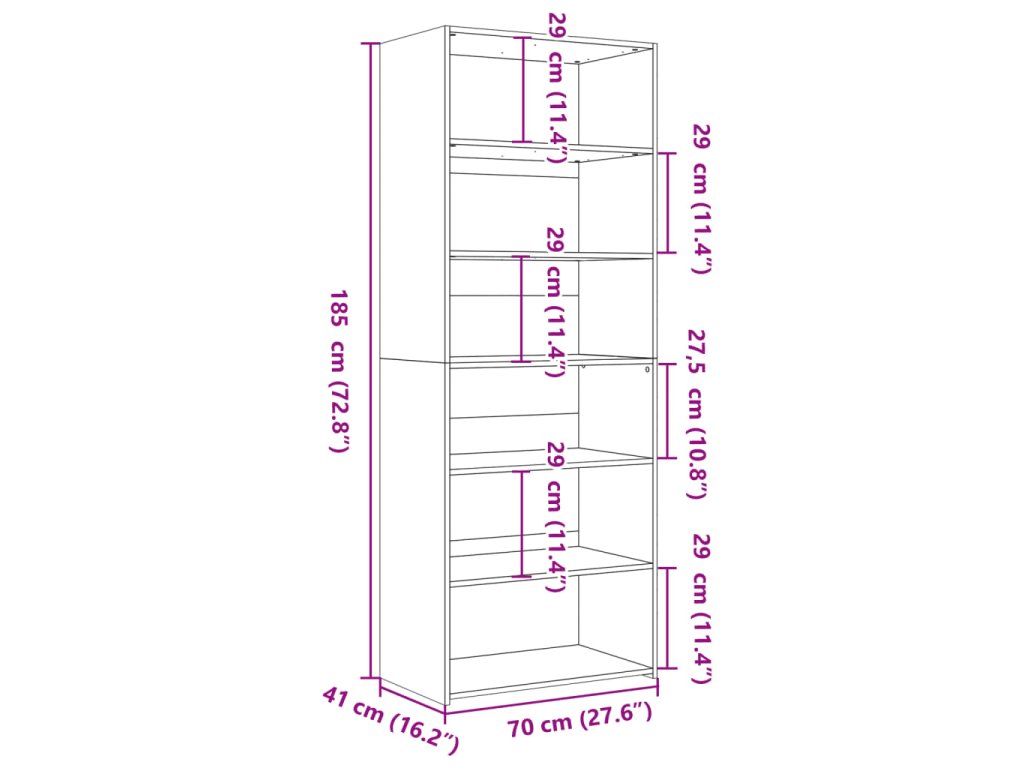 - Rozměry: 70 x 41 x 185 cm (Š x H x V)