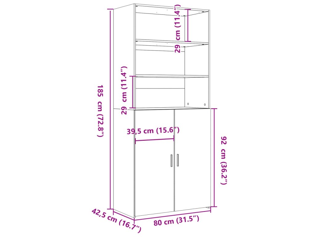 - Rozměry: 80 x 42,5 x 185 cm (D x Š x V)