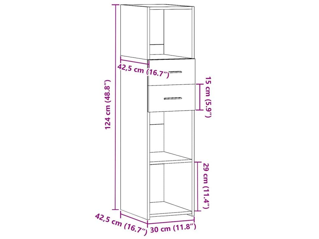 - Rozměry: 30 x 42,5 x 124 cm (Š x H x V)