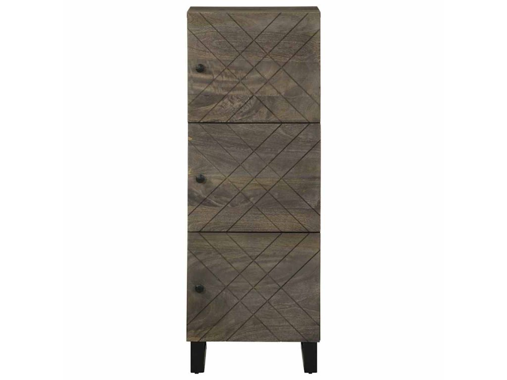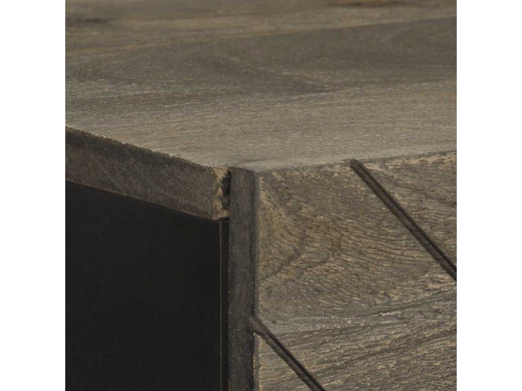 - Materiál: masivní mangové dřevo s šedou povrchovou úpravou pískováním, umělé dřevo, kov