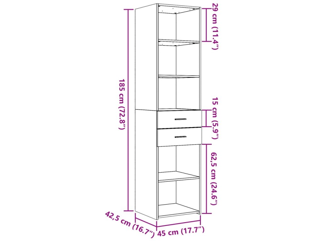 - Rozměry: 45 x 42,5 x 185 cm (Š x H x V)