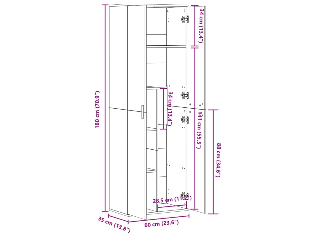 - Rozměry: 60 x 35 x 180 cm (D x Š x V)