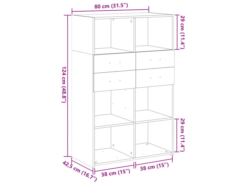 - Dostatek úložného prostoru: Tento highboard má otevřené přihrádky a zásuvky, které poskytují dostatek úložného prostoru, kam si můžete přehledně uschovat různé každodenní potřeby a mít je pěkně po ruce.
