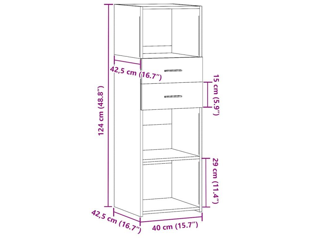 - Rozměry: 40 x 42,5 x 124 cm (Š x H x V)