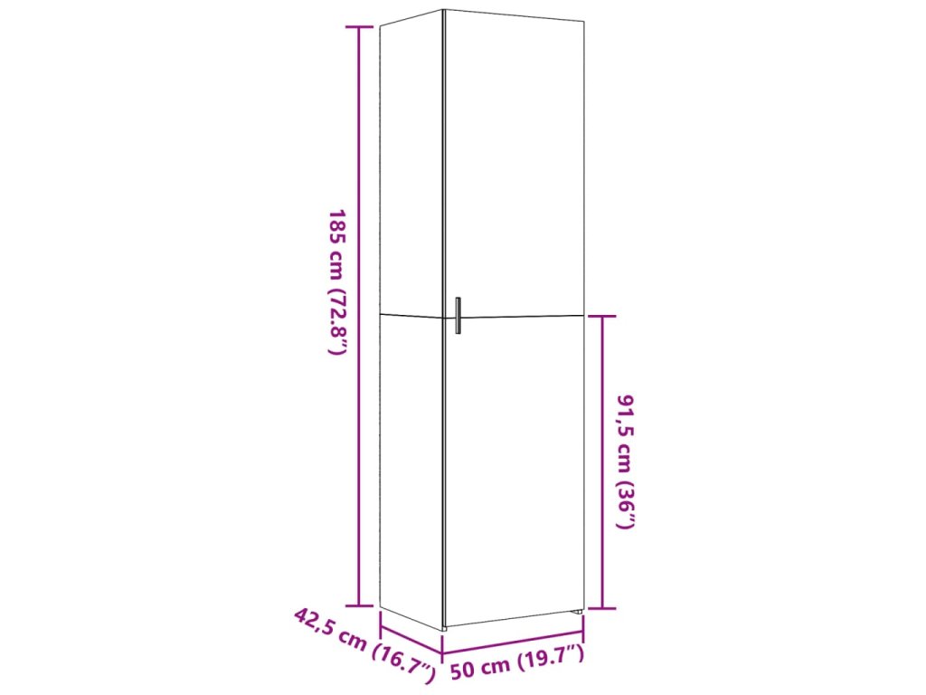 - Rozměry: 50 x 42,5 x 185 cm (D x Š x V)