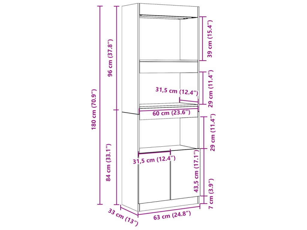 - Praktický design: Highboard je vybaven spodní skříňkou s dvířky, která chrání vaše věci před prachem a nečistotami.