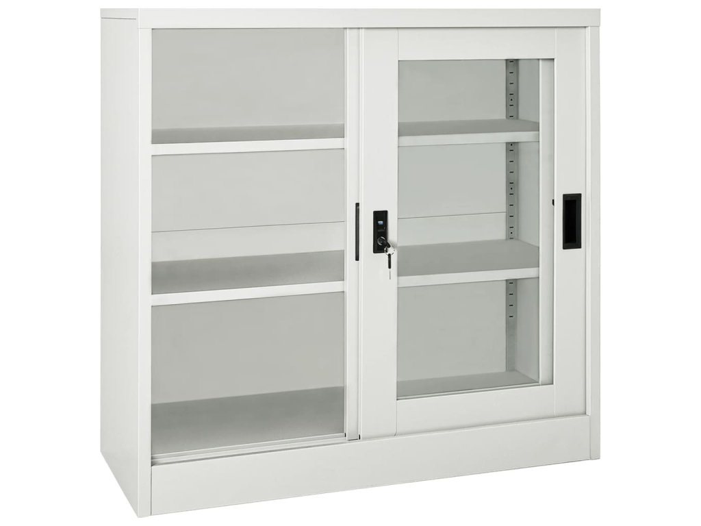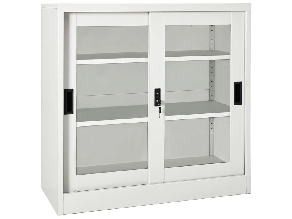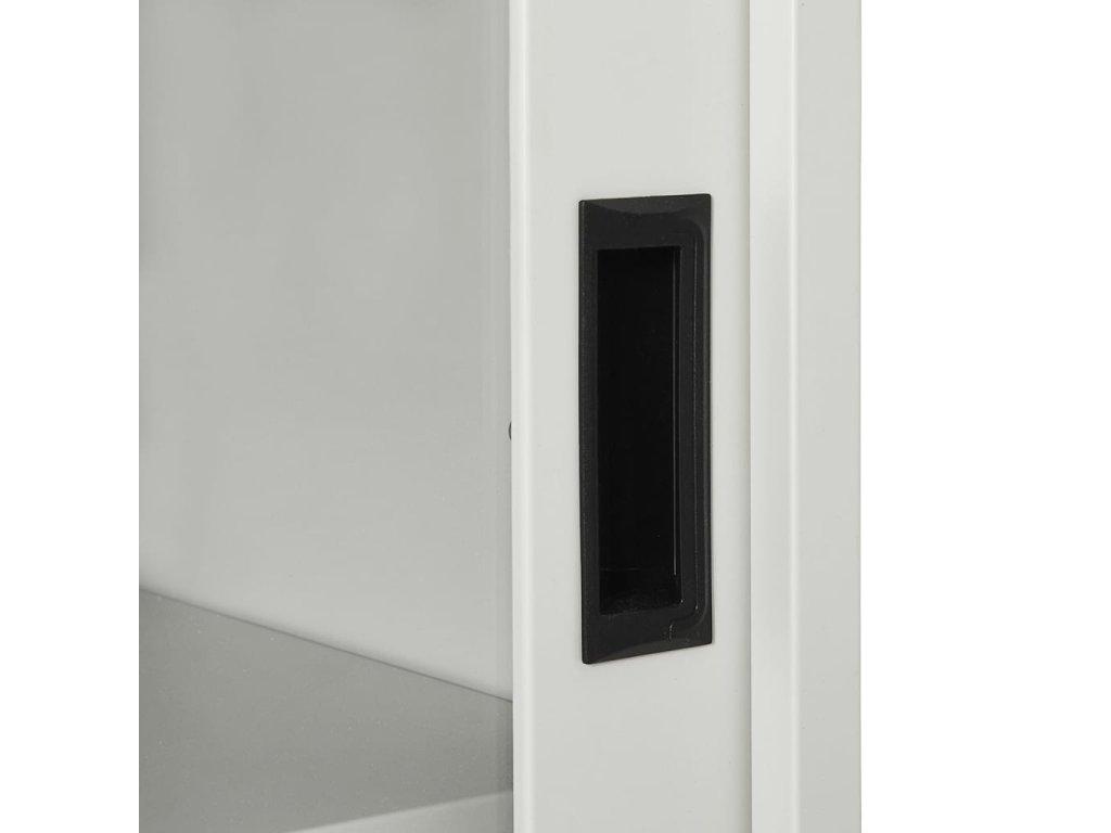 Úložná skříň je vyrobena z oceli a tvrzeného skla, takže je mimořádně robustní a odolná. Posuvné dveře zajišťují hladké otevírání a zavírání. Skříň má navíc výškově nastavitelné police, je tedy vhodná pro ukládání složek různých velikostí. Kartotéka je také vybavena zámkem, který chrání vaše osobní dokumenty před nevítanými hosty. Skříně s posuvnými dveřmi se skvěle hodí do místností s omezeným prostorem nebo do úzkých uliček, kde není možné použít skříň s křídlovými dveřmi.