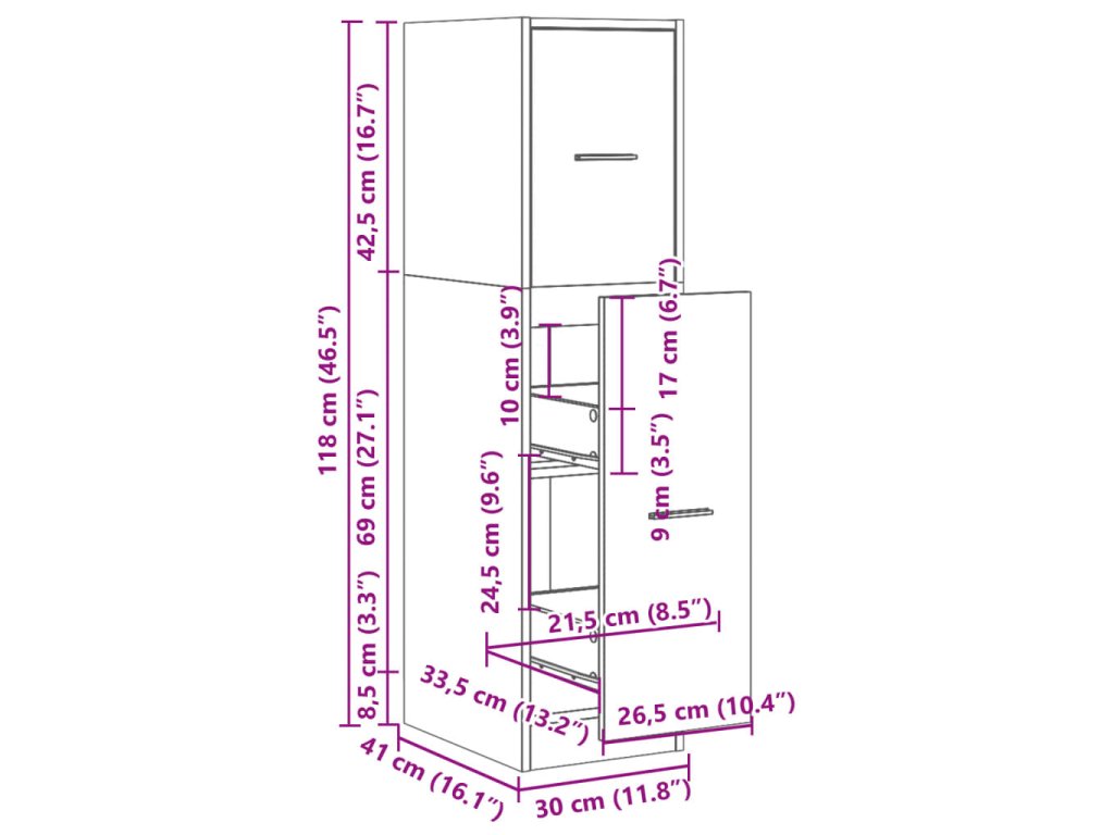 - Celkové rozměry: 30 x 41 x 118 cm (Š x H x V)