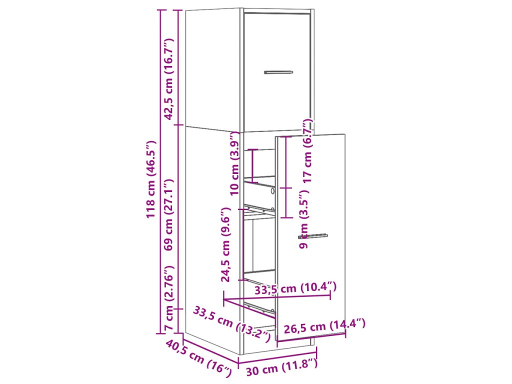 - Celkové rozměry: 30 x 41 x 118 cm (Š x H x V)