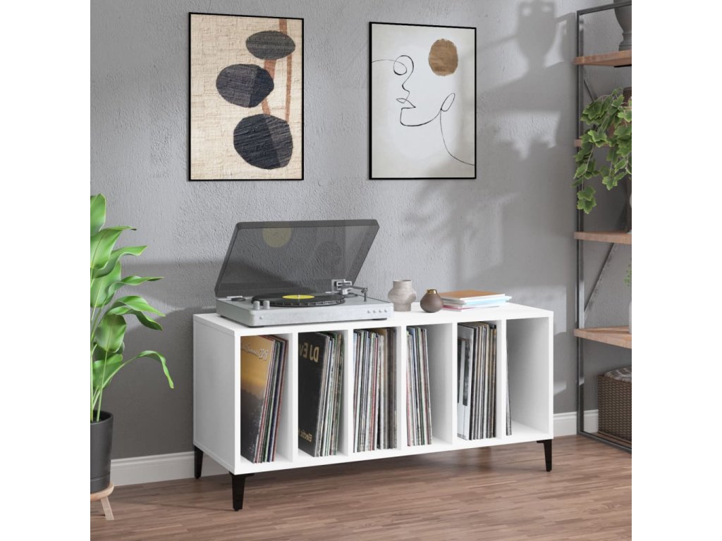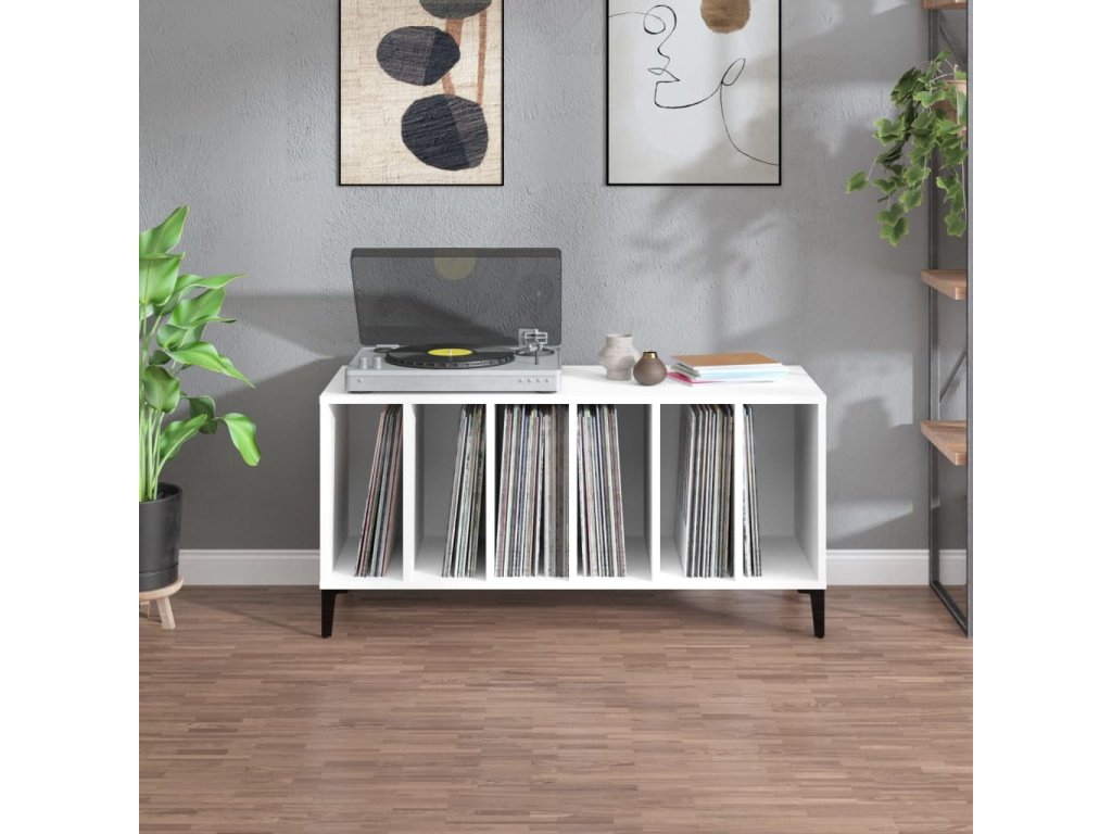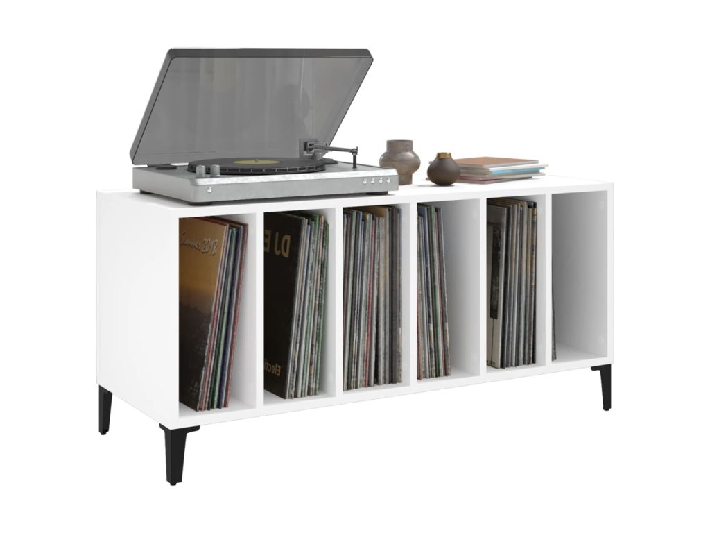 - Robustní horní část: Pevná horní část skříňky na vinyly je ideální pro umístění přehrávače nebo jiné elektroniky.