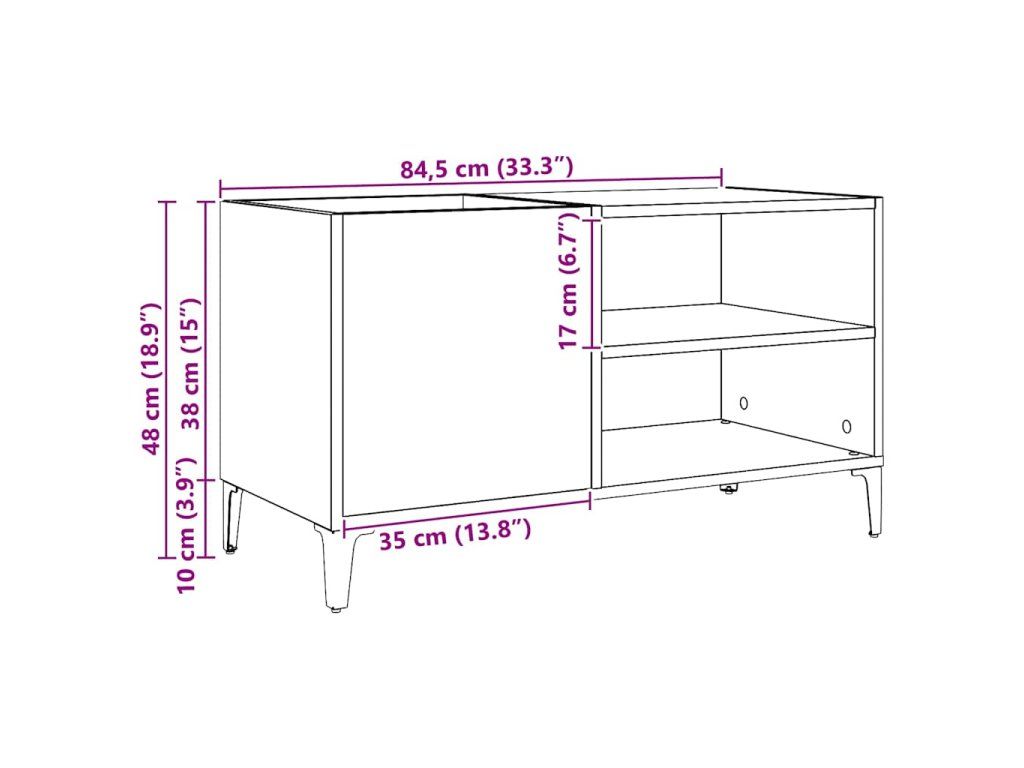 - Robustní horní část: Pevná horní část skříňky na vinyly je ideální pro umístění přehrávače nebo jiné elektroniky.