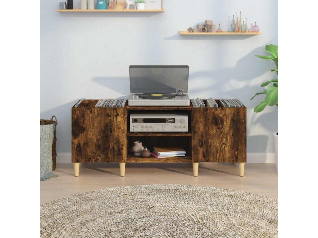 - Robustní horní část: Pevná horní část skříňky na vinyly je ideální pro umístění přehrávače nebo jiné elektroniky.