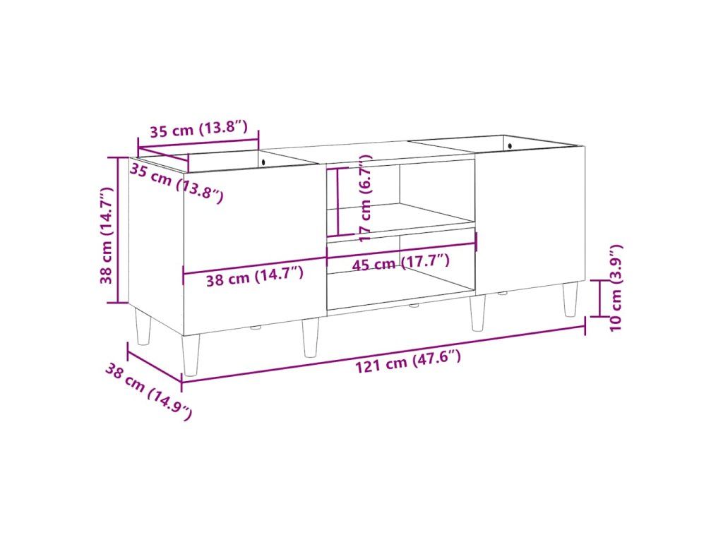 - Rozměry: 121 x 38 x 48 cm (Š x H x V)