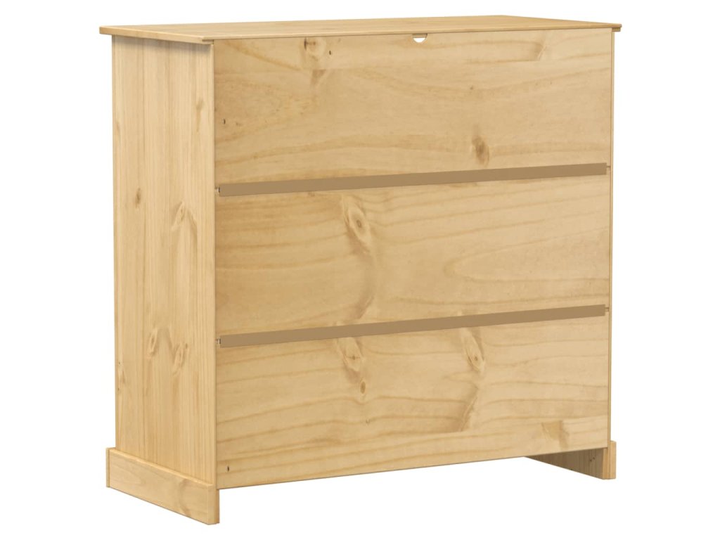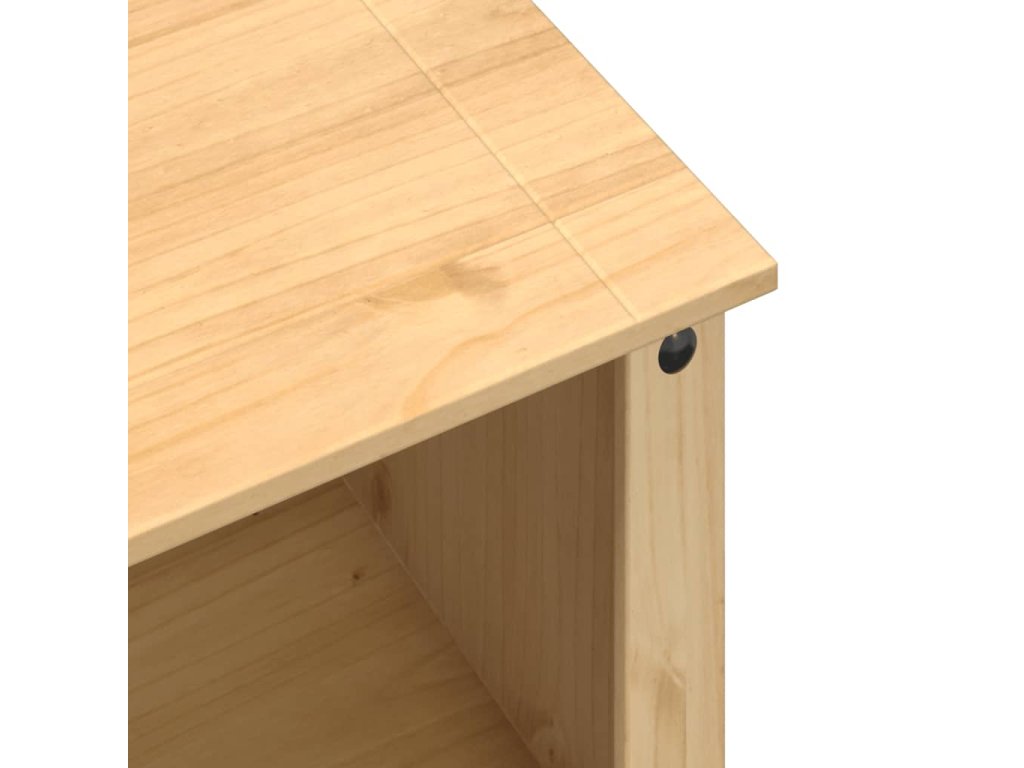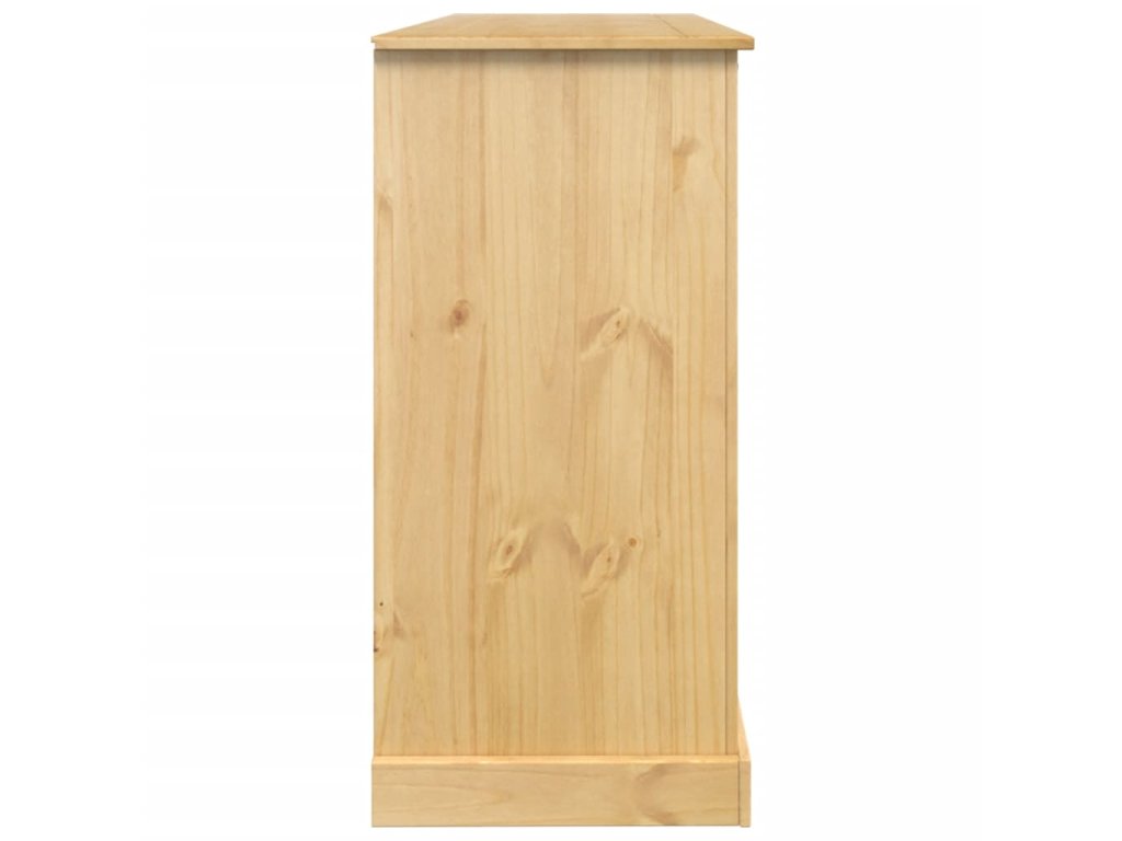 - Masivní borové dřevo: Masivní borové dřevo je krásný přírodní materiál. Borové dřevo má rovnou kresbu a obsahuje suky, které materiálu dodávají jeho charakteristický, rustikální vzhled. Skříň je vyrobena z masivního borového dřeva, je tedy odolná a robustní.