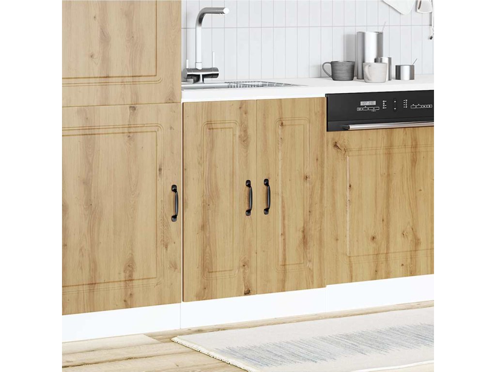 - Praktické dveře: Dvířka pomáhají udržovat čistý a uspořádaný prostor tím, že za nimi jsou schovány kuchyňské spotřebiče a nepořádek.