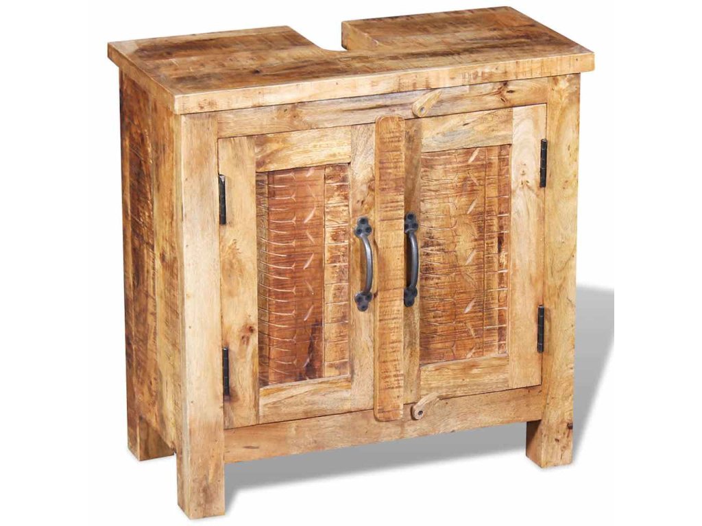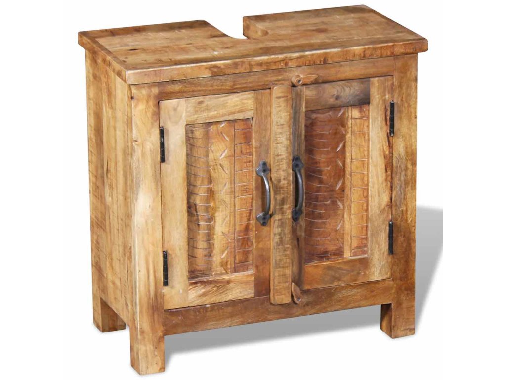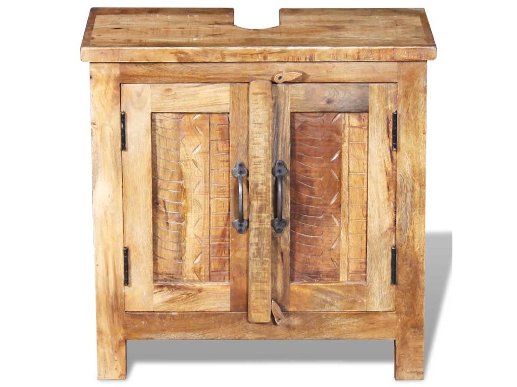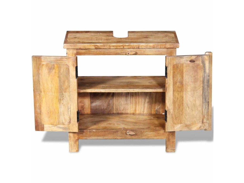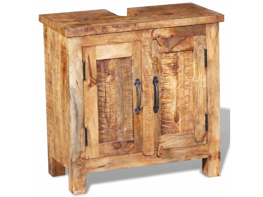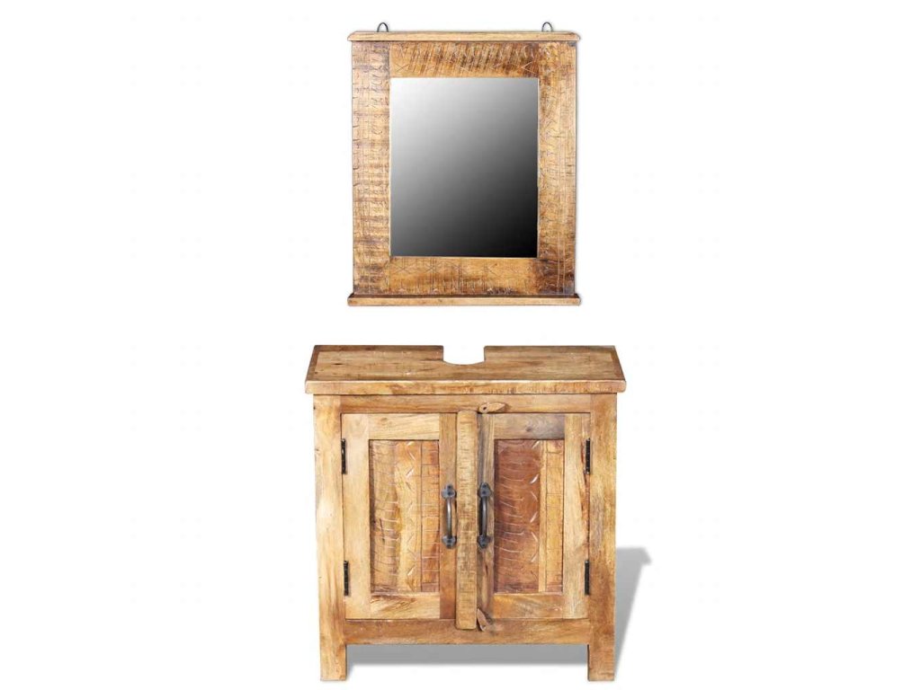 Skříňka pod umyvadlo a rám zrcadla jsou vyrobené z masivního mangovníkového dřeva, což činí tento koupelnový nábytek stabilní, pevný a odolný. Řemeslné zpracování a krásná struktura dřeva dává každému nábytku jedinečný a od všech ostatních odlišný charakter.