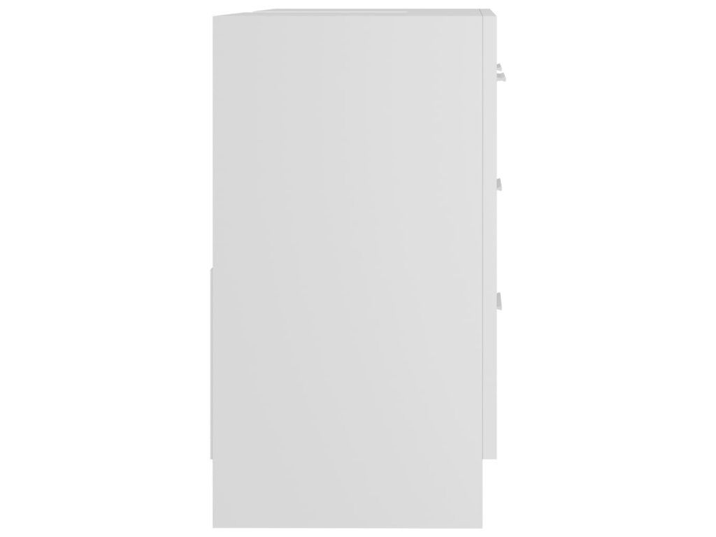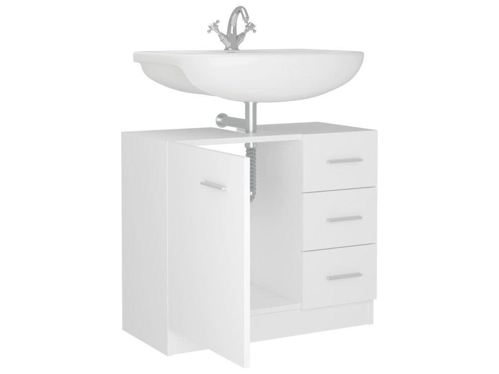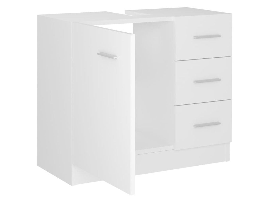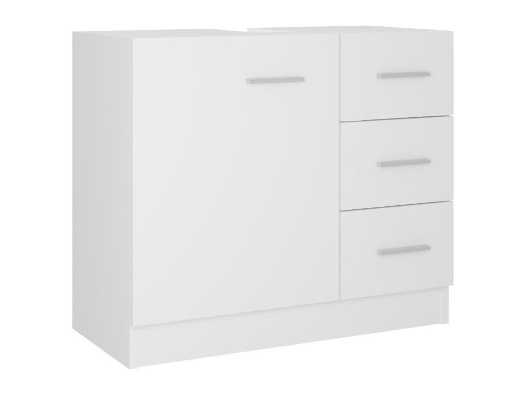 Skříňka je vyrobená z kompozitního dřeva, takže je pevná a stabilní. Obsahuje 1 přihrádku a 3 zásuvky, nabízí tedy celou řadu úložných možností a dodatečné místo, kam uklidit vaše koupelnové potřeby. Horní deska je zase ideálně uzpůsobená k umístění umyvadla. Skříňku snadno očistíte navlhčeným hadříkem.