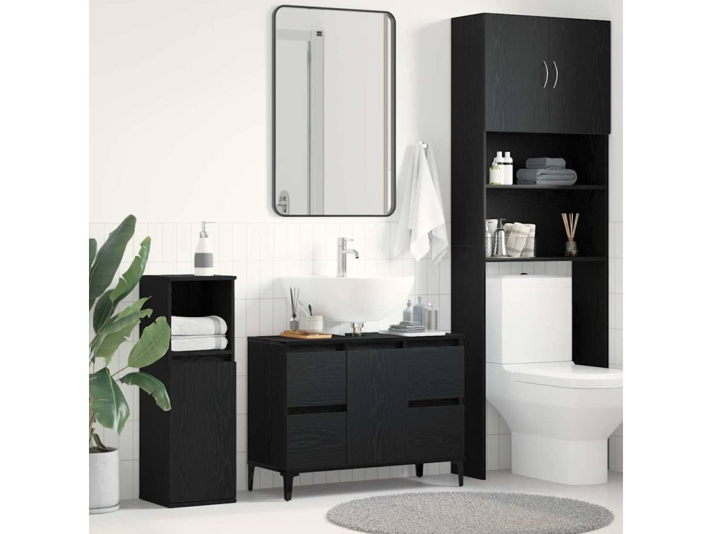 - Postavená z kompozitního dřeva: Tato skříňka je vyrobena z kvalitního kompozitního dřeva, které zajišťuje odolnost a hladký povrch. Materiál zaručuje, že skříňka vydrží dlouho a zároveň si uchovává svůj estetický vzhled, což vám poskytuje stylové řešení pro ukládání vašich toaletních potřeb.