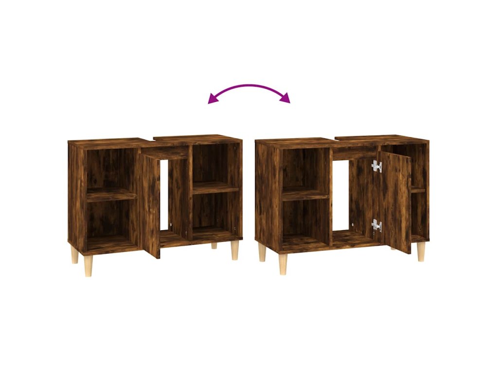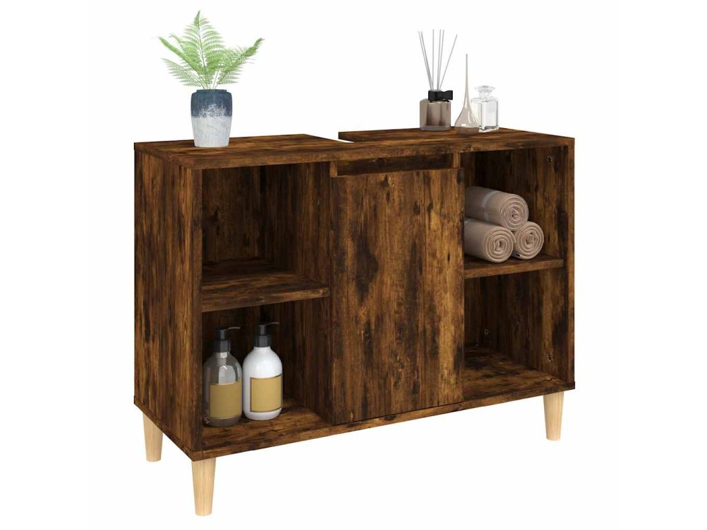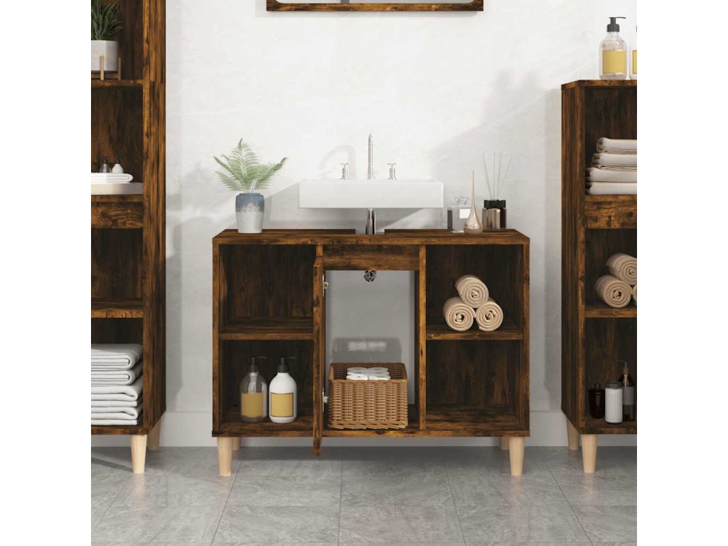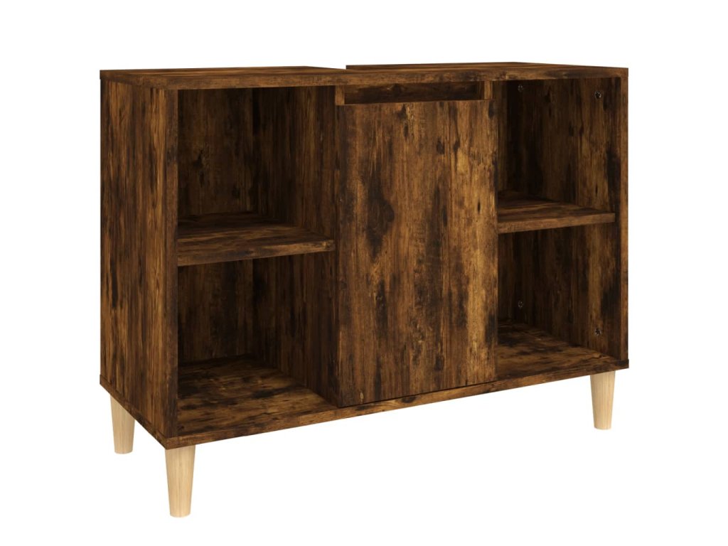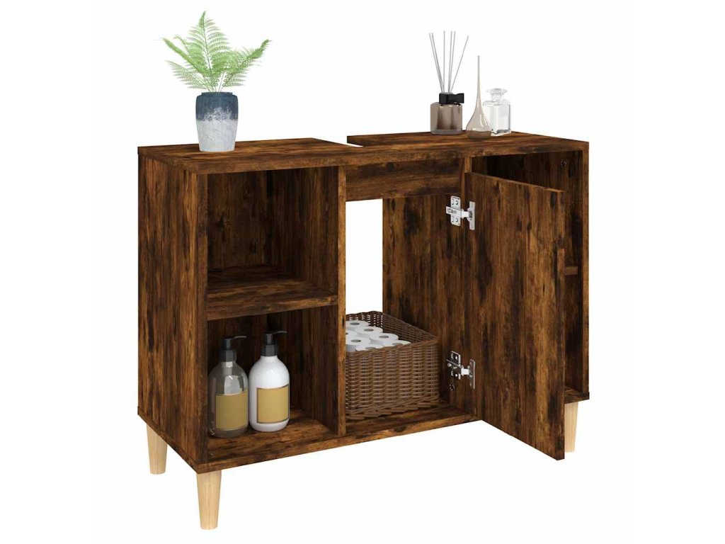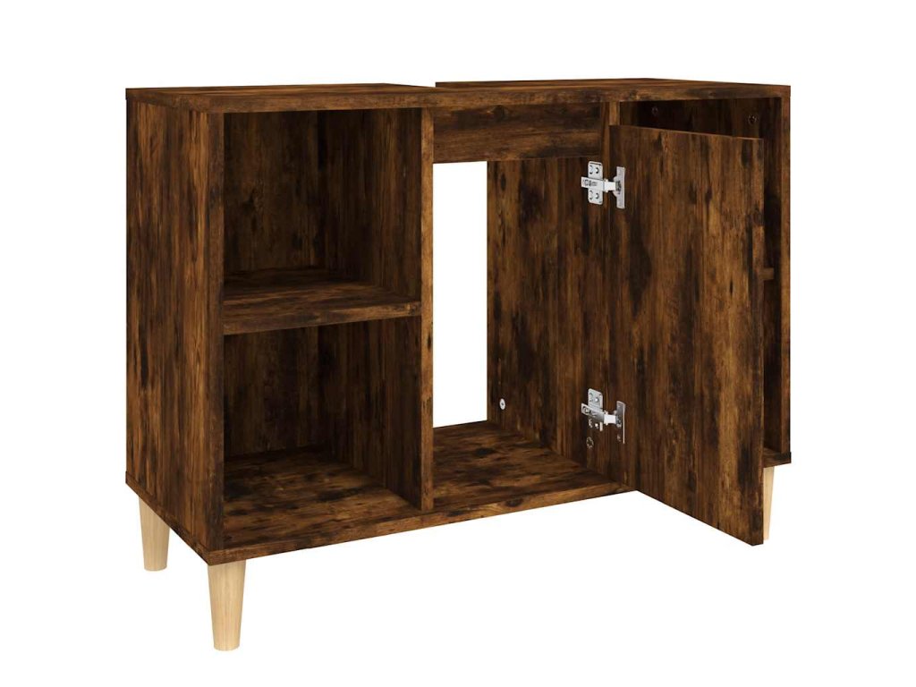 - Dřevěné nožičky: Nožičky z masivního eukalyptového dřeva dodávají umyvadlové skříňce přirozený a příjemný vzhled a zároveň zajišťují stabilitu.
