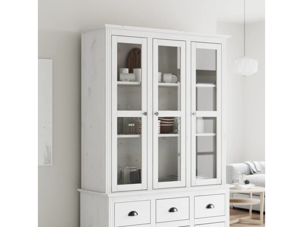 - Dostatek úložného prostoru: Vitrína je vybavena policemi a prosklenými dvířky, takže si můžete přehledně a uspořádaně vystavit nádobí, šálky, dekorace atd.