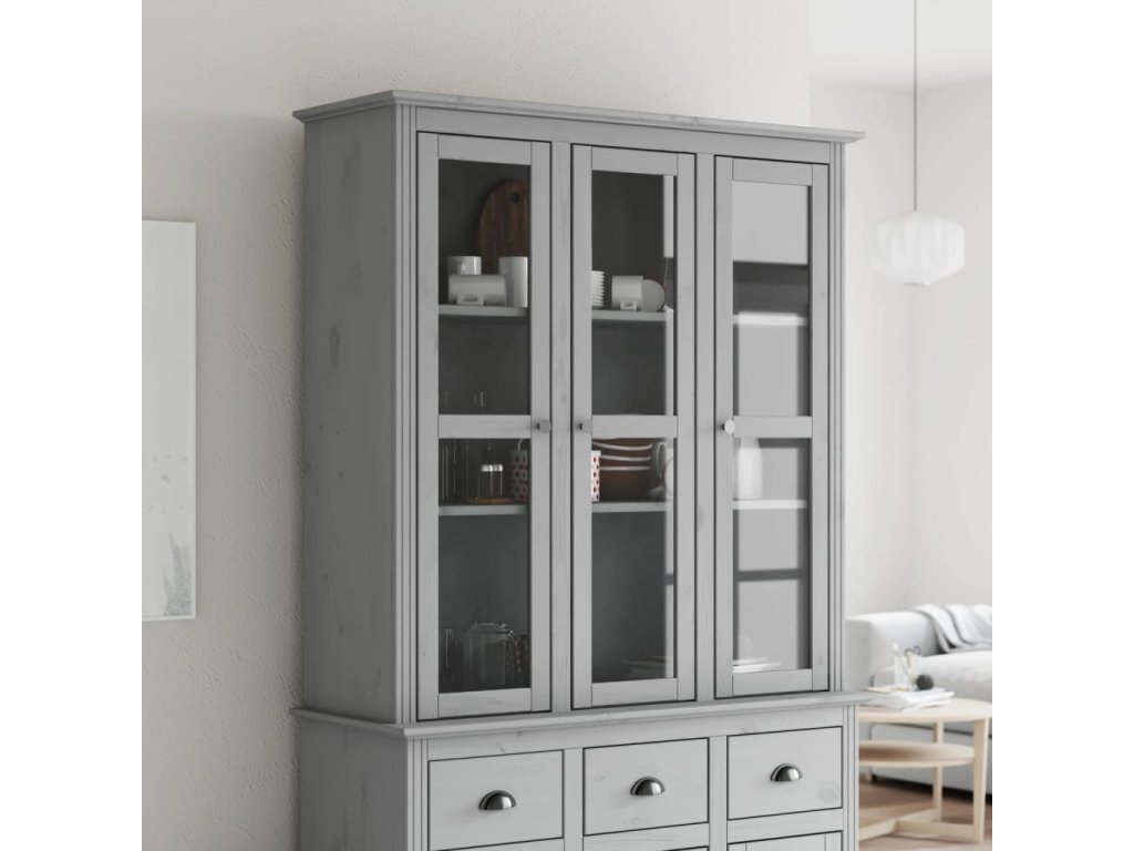 - Dostatek úložného prostoru: Vitrína je vybavena policemi a prosklenými dvířky, takže si můžete přehledně a uspořádaně vystavit nádobí, šálky, dekorace atd.