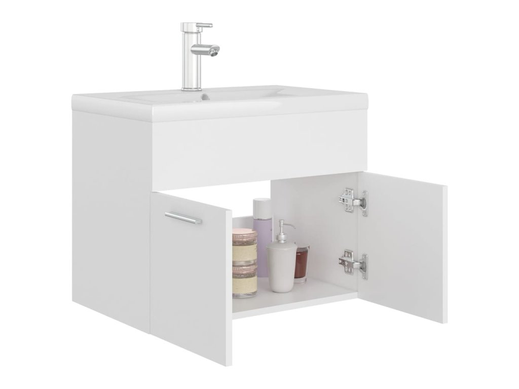 Skříňka je zhotovená z desek, což jí zaručuje výtečnou stabilitu a pevnost. Za dvoukřídlými dvířky najdete 1 přihrádku, která vám poskytne spoustu místa k uložení vašich věcí. Dokonale padne pod umyvadlo a nabídne vám šikovné úložné řešení do koupelny. Keramické umyvadlo neslouží pouze jako hygienická nádoba pro každodenní použití – hraje také významnou dekorativní roli. Svým trendovým a moderním designem navíc krásně doplní každý styl zařízení. Součástí je i přepad, který umožňuje odtékání vody v případě, že se umyvadlo příliš přeplní. Glazovaný povrch mu dodává novodobý, elegantní vzhled. Skříňku i umyvadlo snadno očistíte navlhčeným hadříkem.