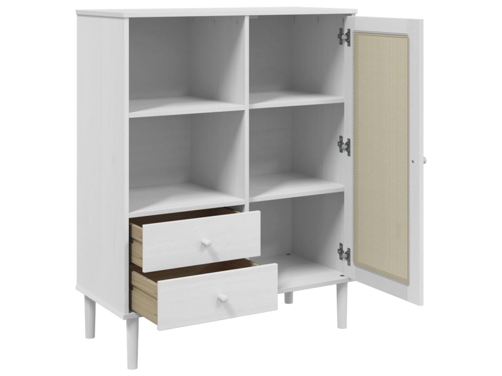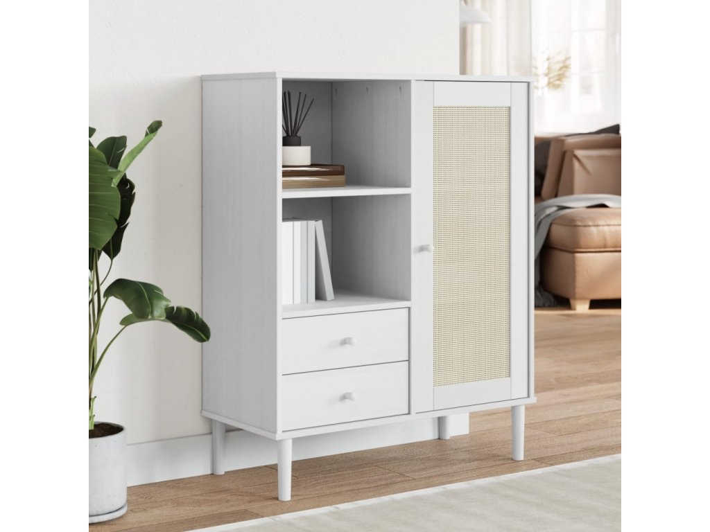 - Povrch s ratanovým vzhledem: Povrch dvířek této vysoké skříňky je ručně vyroben z polyratanu, dvoubarevné kombinace bohémského a moderního stylu z poloviny minulého století, která dodá vašemu prostoru útulný a zároveň stylový nádech.